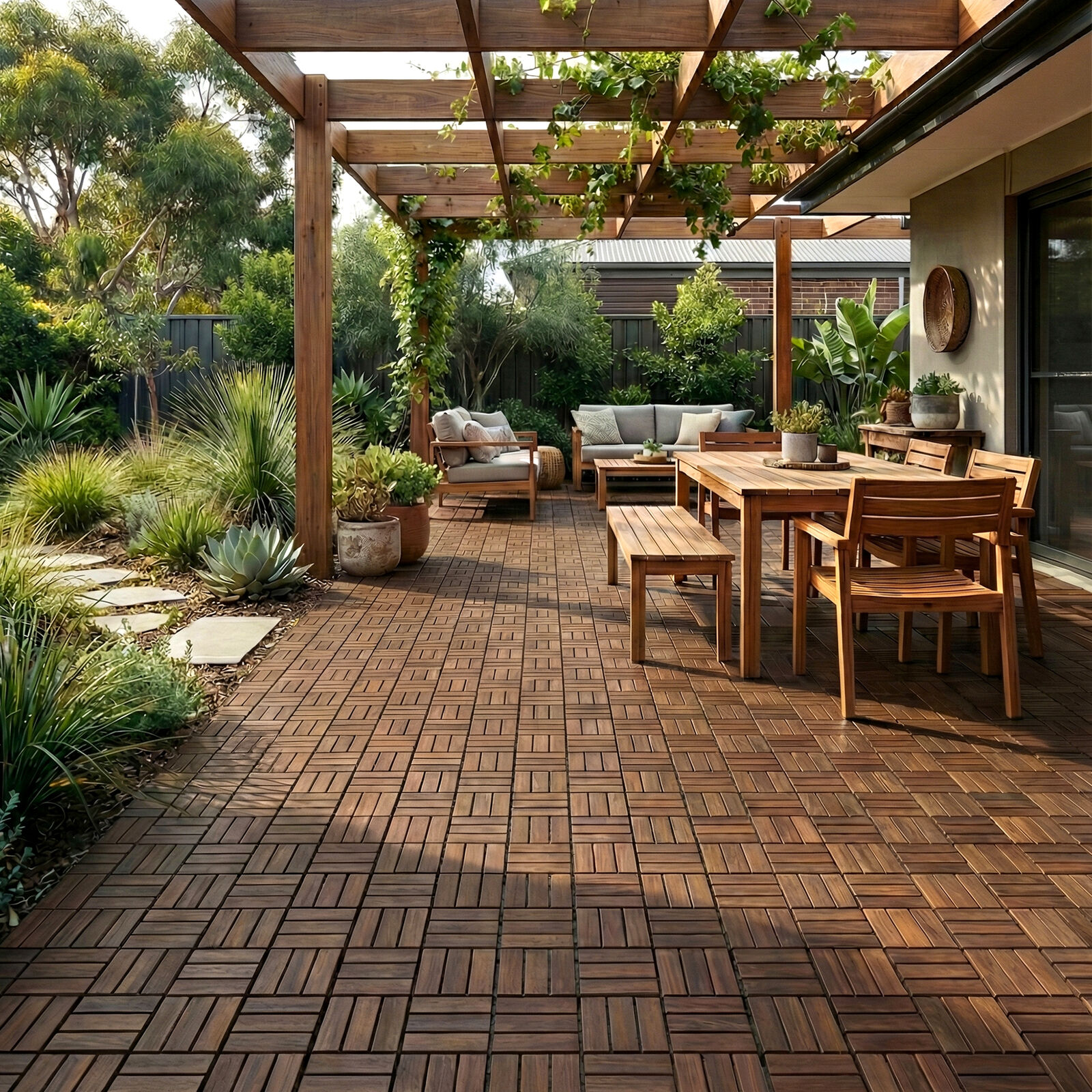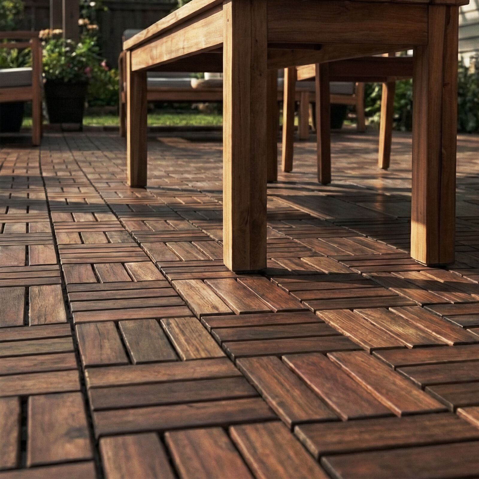 Upgrade your space with the Solid Wood Deck Tile, crafted from premium real wood for a natural and stylish finish. Designed with a convenient interlocking system, it allows quick and easy DIY installation without the need for tools. The raised base structure supports efficient drainage and improved airflow, helping maintain a clean and comfortable surface. Ideal for patios, balconies, gardens, walkways, and outdoor living areas, this deck tile adds warmth, texture, and timeless appeal to any space.