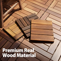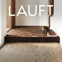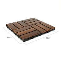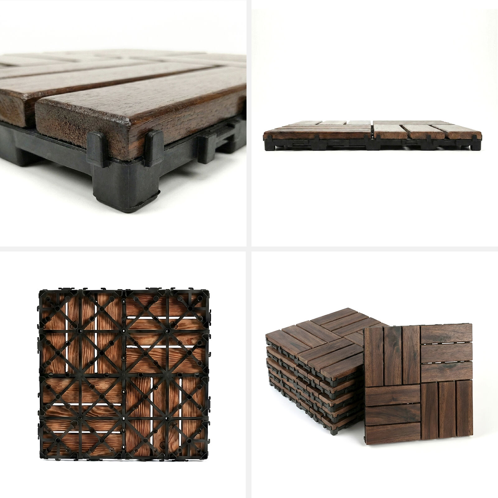 Lauft 10x Dark Brown Carbonized Solid Pine Wood Deck Tiles, 12-Slat, 30×30cm Interlocking Outdoor Fl