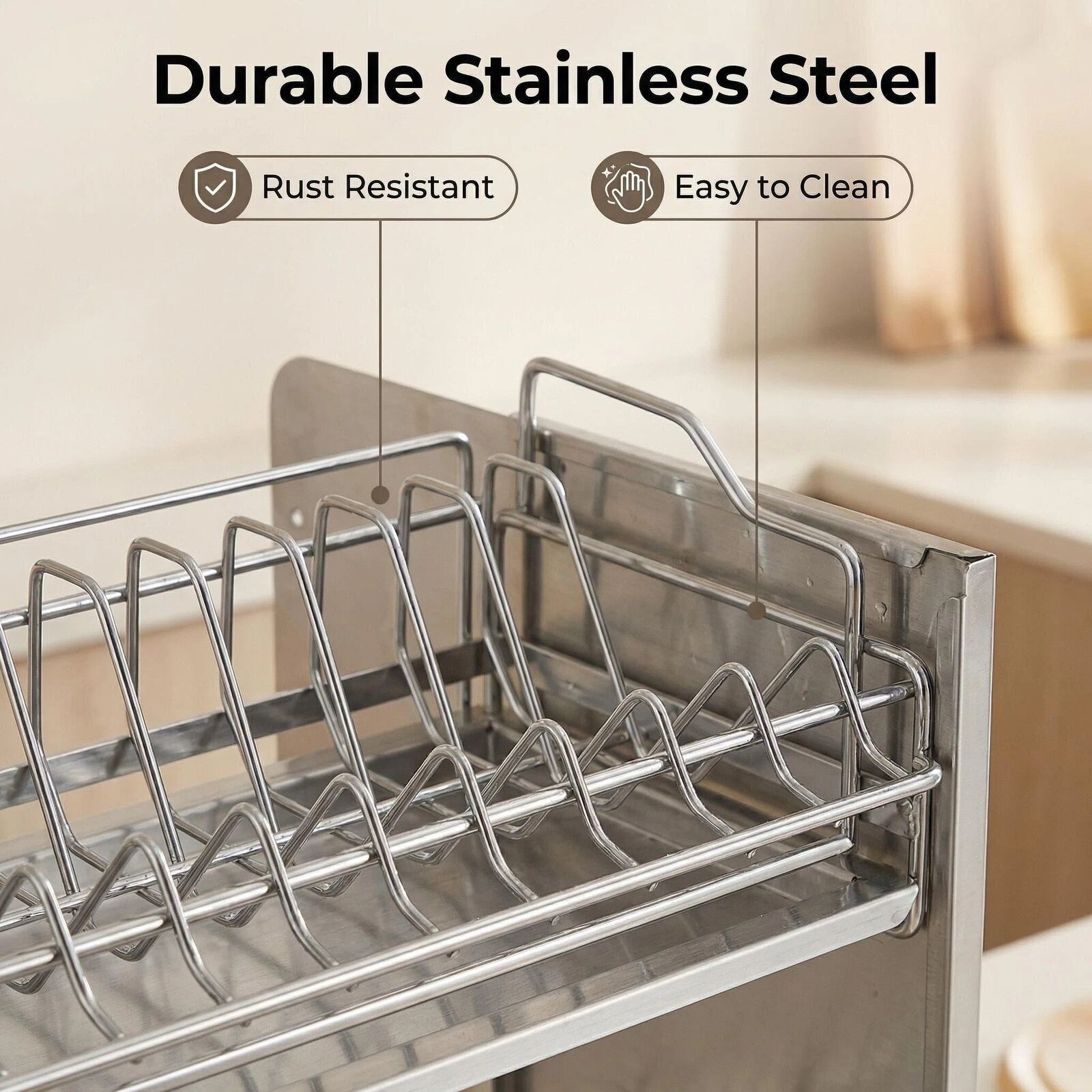 - Built to Last in Real Kitchens - Premium stainless steel with rust- and corrosion-resistant coating ensures long-lasting durability. Easy to clean, shiny, and ready for everyday use.