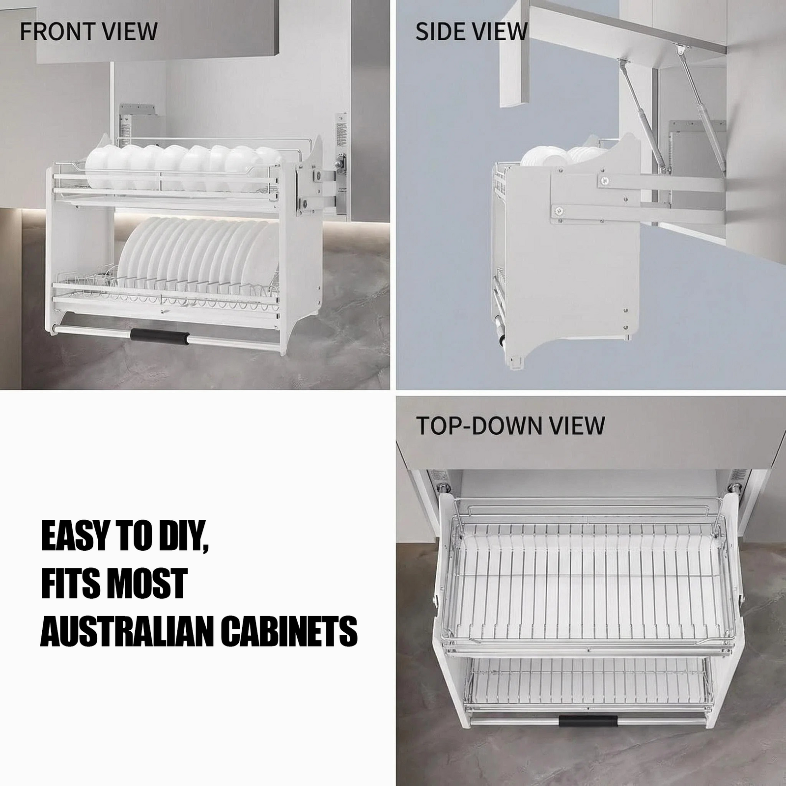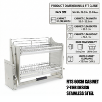 Maximize your kitchen storage and effortlessly access hard-to-reach items with this premium 2-tier pull-down cabinet rack, designed for standard 600mm Australian cabinets.