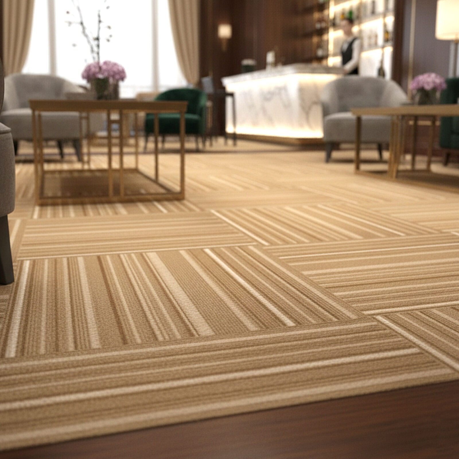 Lauft 20PCS Brown & Beige Stripes Peel and Stick Carpet Tiles 50×50cm,Fire-Resistant & Stain-Resista