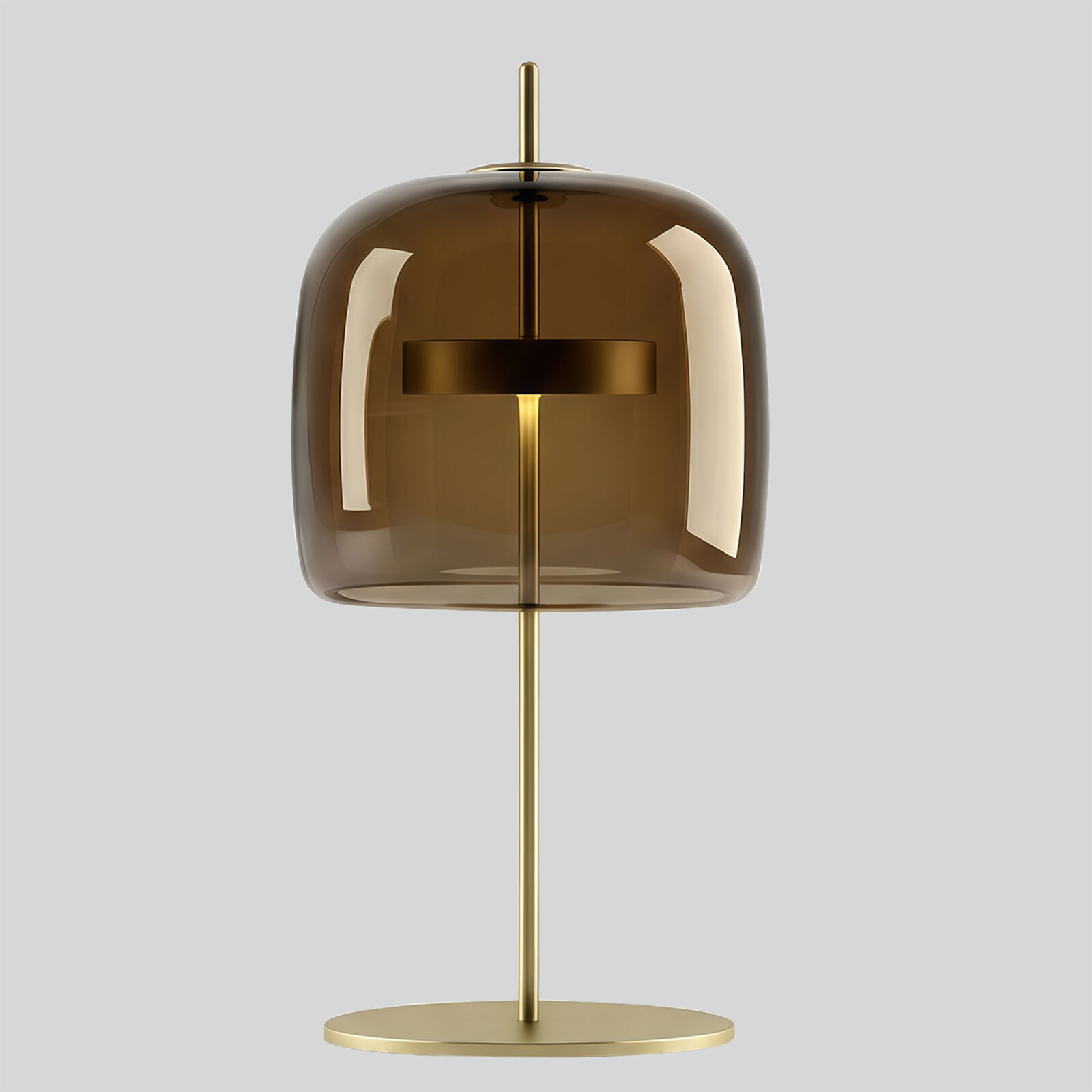 Inspired by iconic Italian design, the Replica Jube Table Lamp by Vistosi embodies timeless elegance and minimalist sophistication. Originally created by Favaretto & Partners, it features an essential, sinuous, and delicately curved silhouette with a subtle retro charm. Crafted with a translucent smoked glass dome, it softly diffuses light to create a warm, inviting atmosphere. Its graceful proportions and refined presence make it a striking accent for bedside tables, desks, or sideboards in modern interiors.