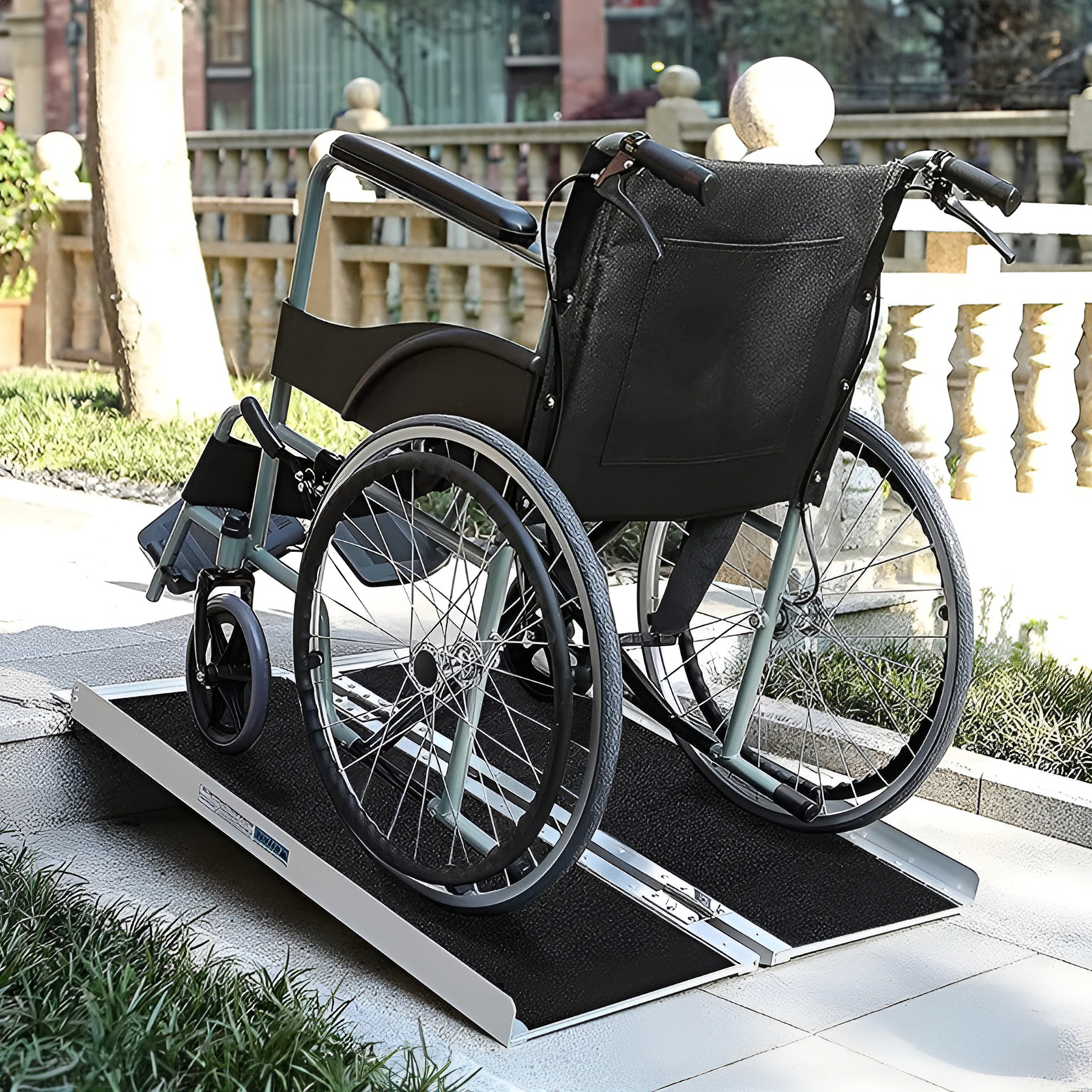 Our portable wheelchair ramp offers a lightweight, foldable design that makes accessing raised surfaces hassle-free. Whether using a wheelchair, scooter, or rollator walker, this ramp is the perfect add-on for your mobility aid, ensuring smooth transitions in and out of vehicles, homes, and buildings. With its durable construction and compact portability, you'll enjoy effortless mobility. Make accessibility a part of your daily routine with this essential tool.