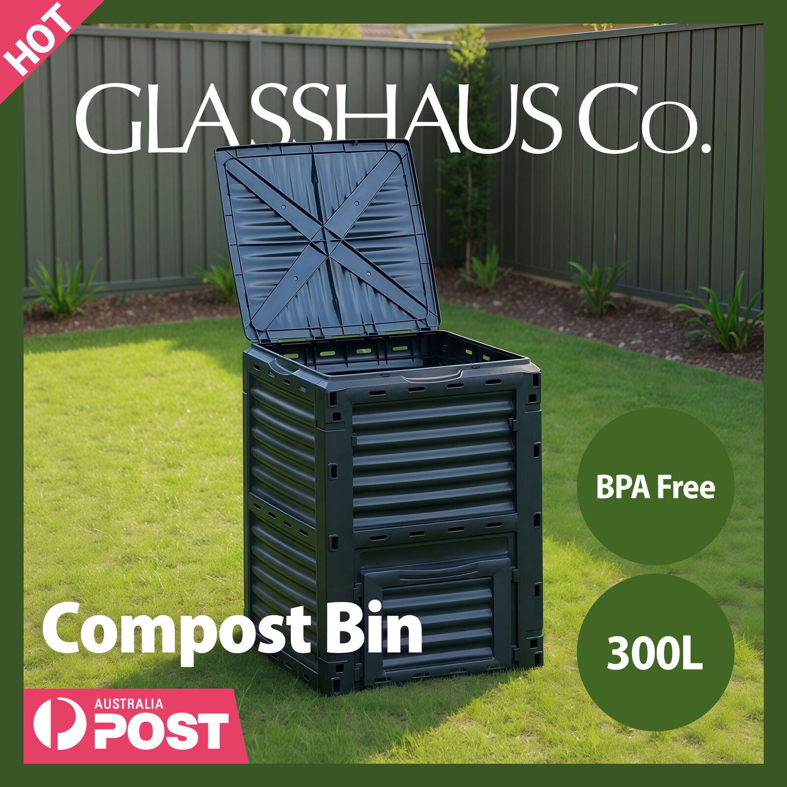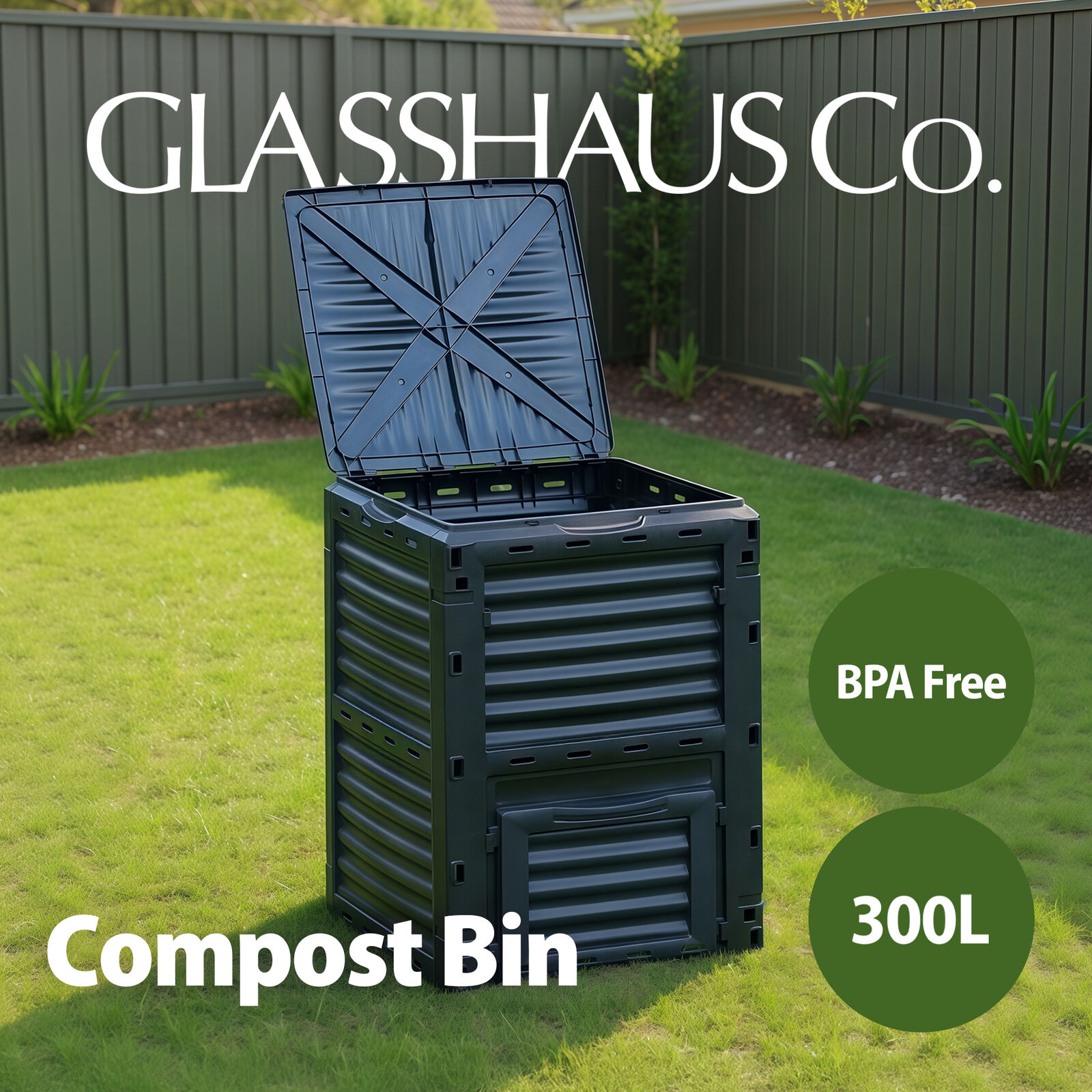 Glasshaus Co. 300L Compost Bin, BPA Free Composter, Large Outdoor Garden Composting Bin w/ Top Lid a