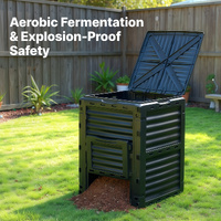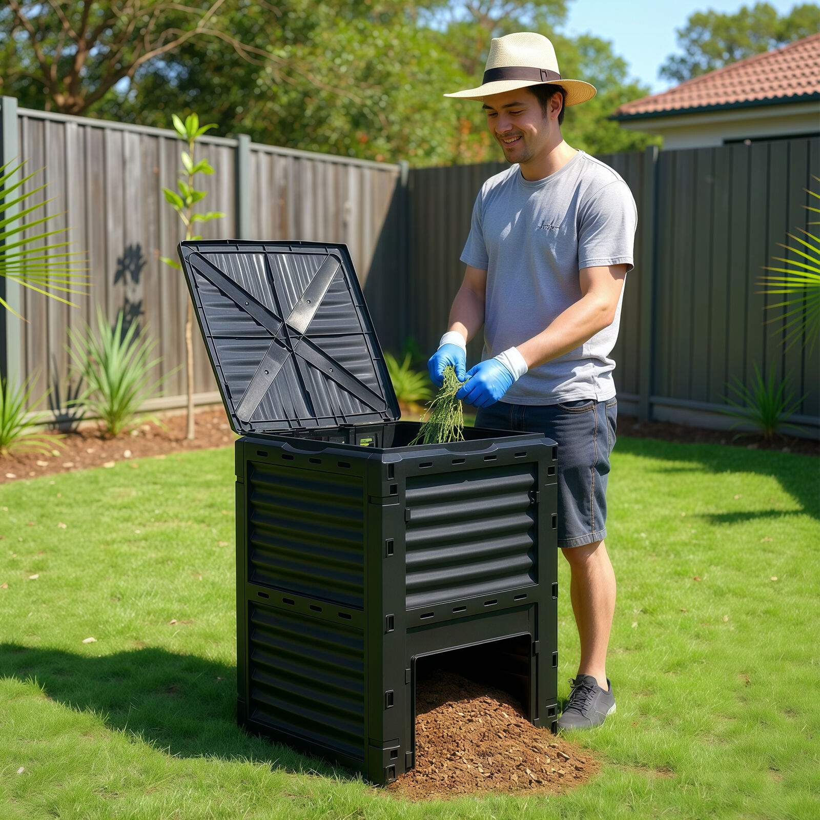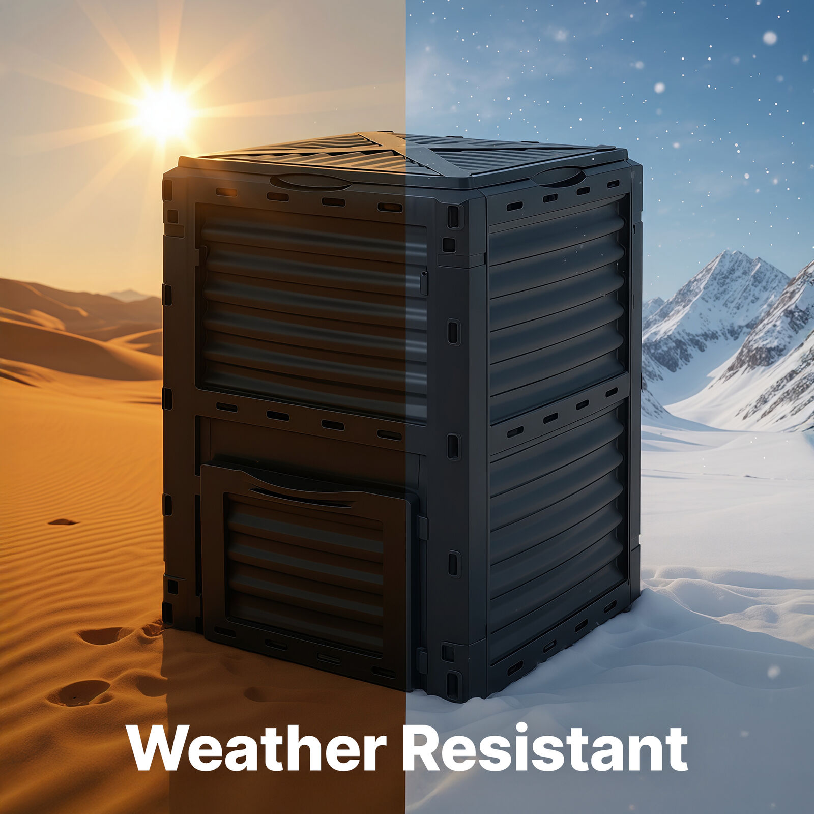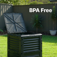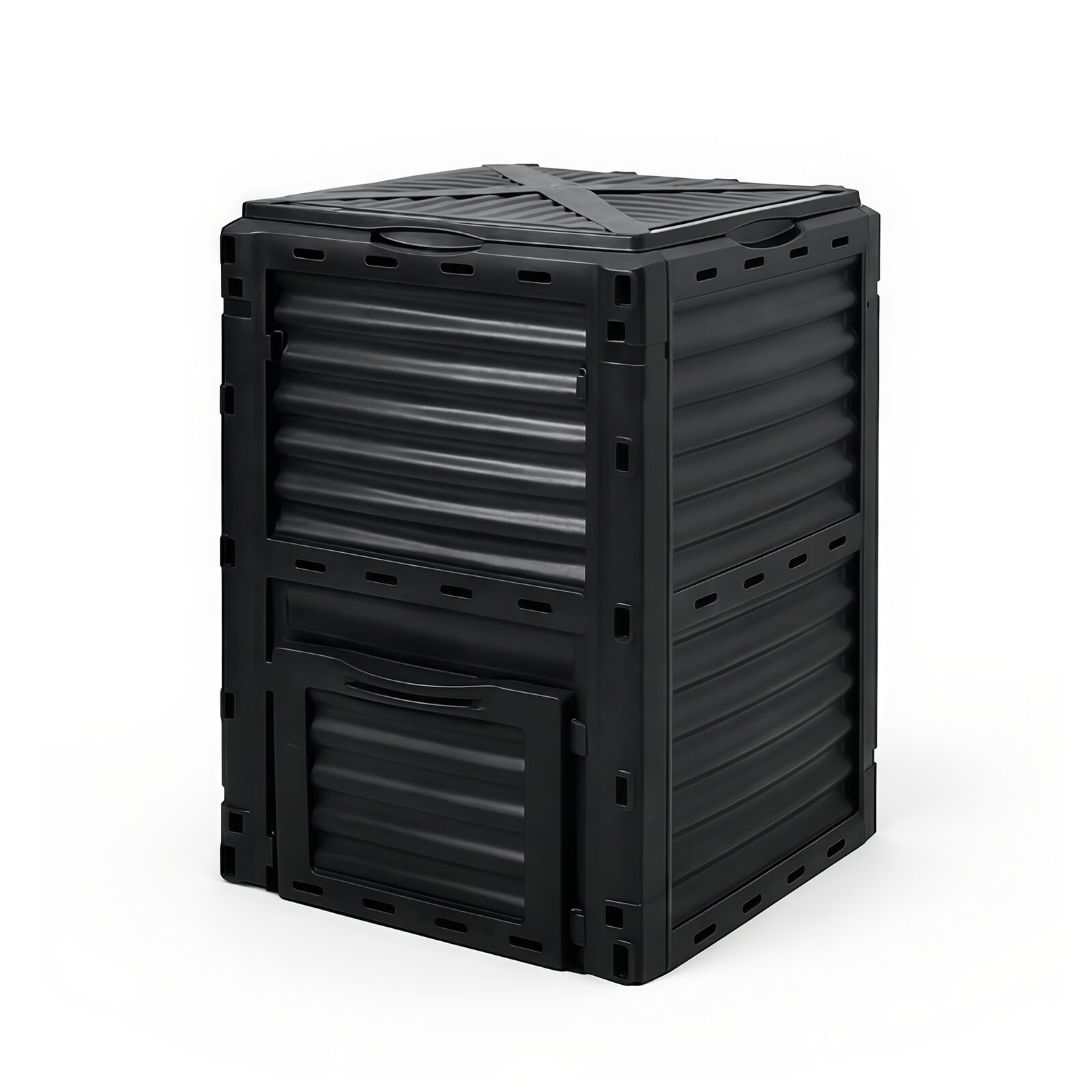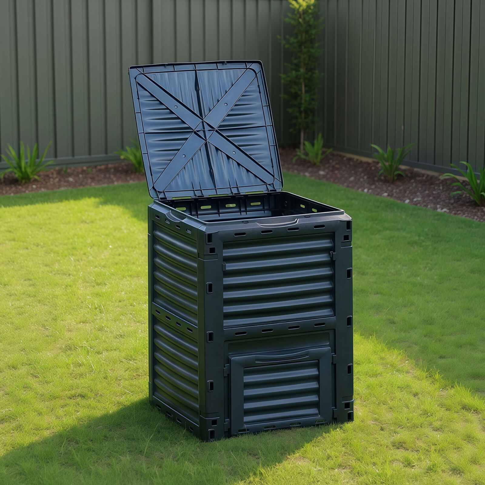 Transform food scraps and yard waste into nutrient-rich compost with this durable 300L Compost Bin Box. Designed for outdoor use, it features a weather-resistant, UV-stable plastic build, ventilated side panels for faster decomposition, and a lift-up lid for easy top loading. Bottom access door allows you to easily collect finished compost while fresh waste continues decomposing. With quick, tool-free assembly and a compact design, its perfect for gardens, balconies, and backyards.