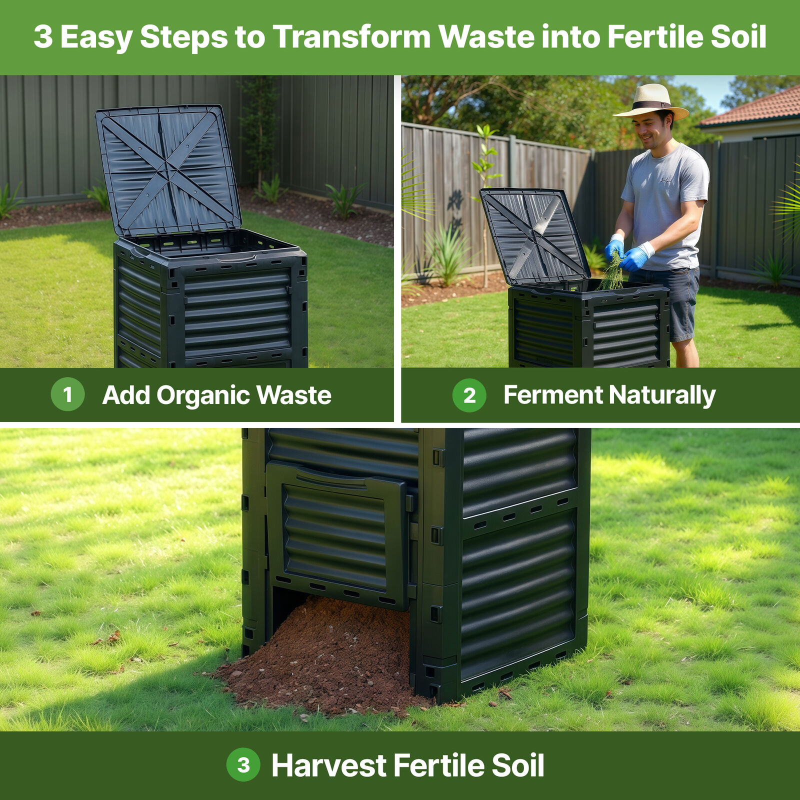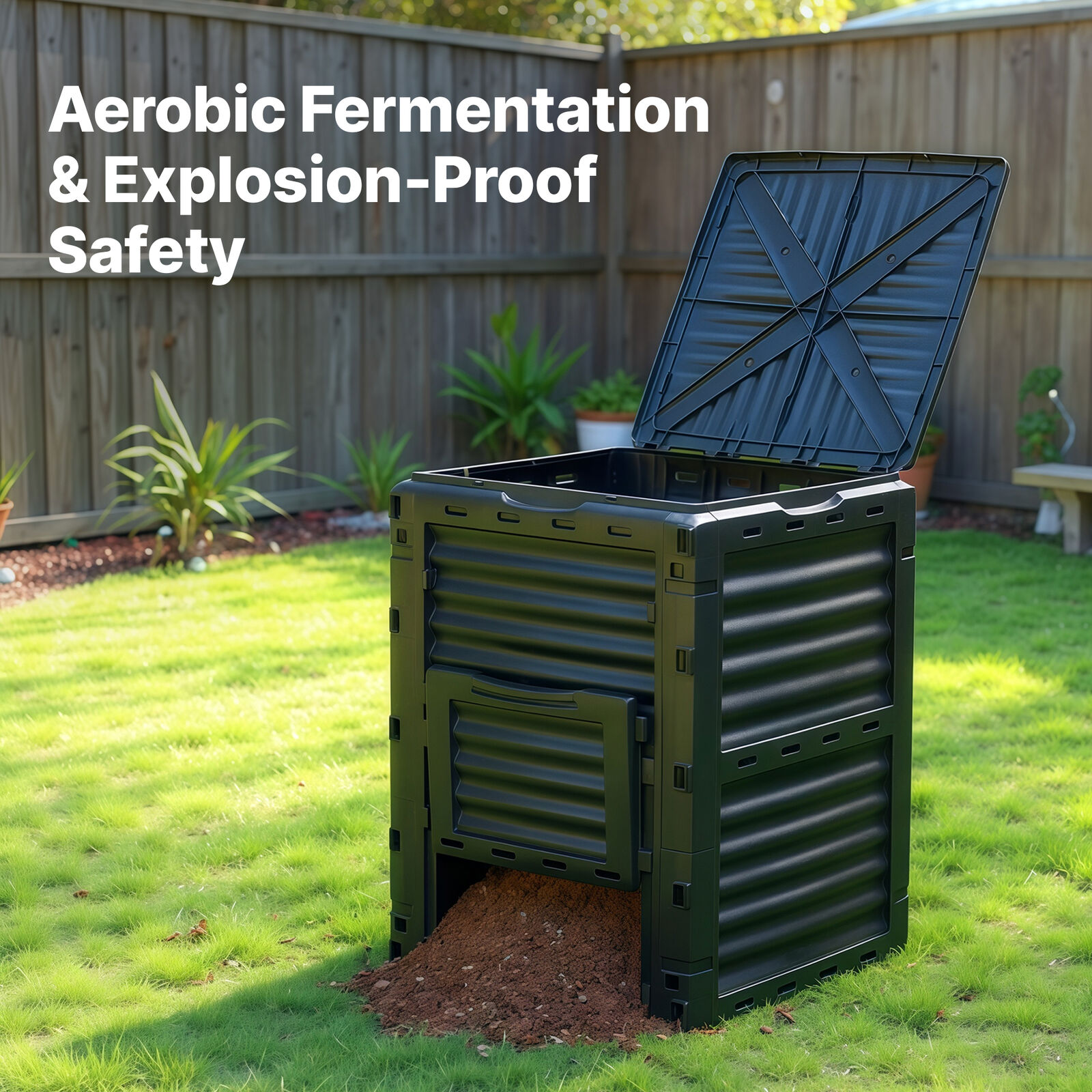 - Lift-Up Lid- Offers quick top access for adding daily organic waste like food scraps and leaves.