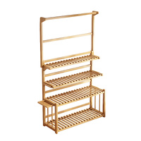 3-in-1 Entryway Clothes Rack Stand and Shoe Storage Bench with Coat Hooks 60 x 31 x 170cm
