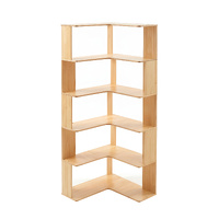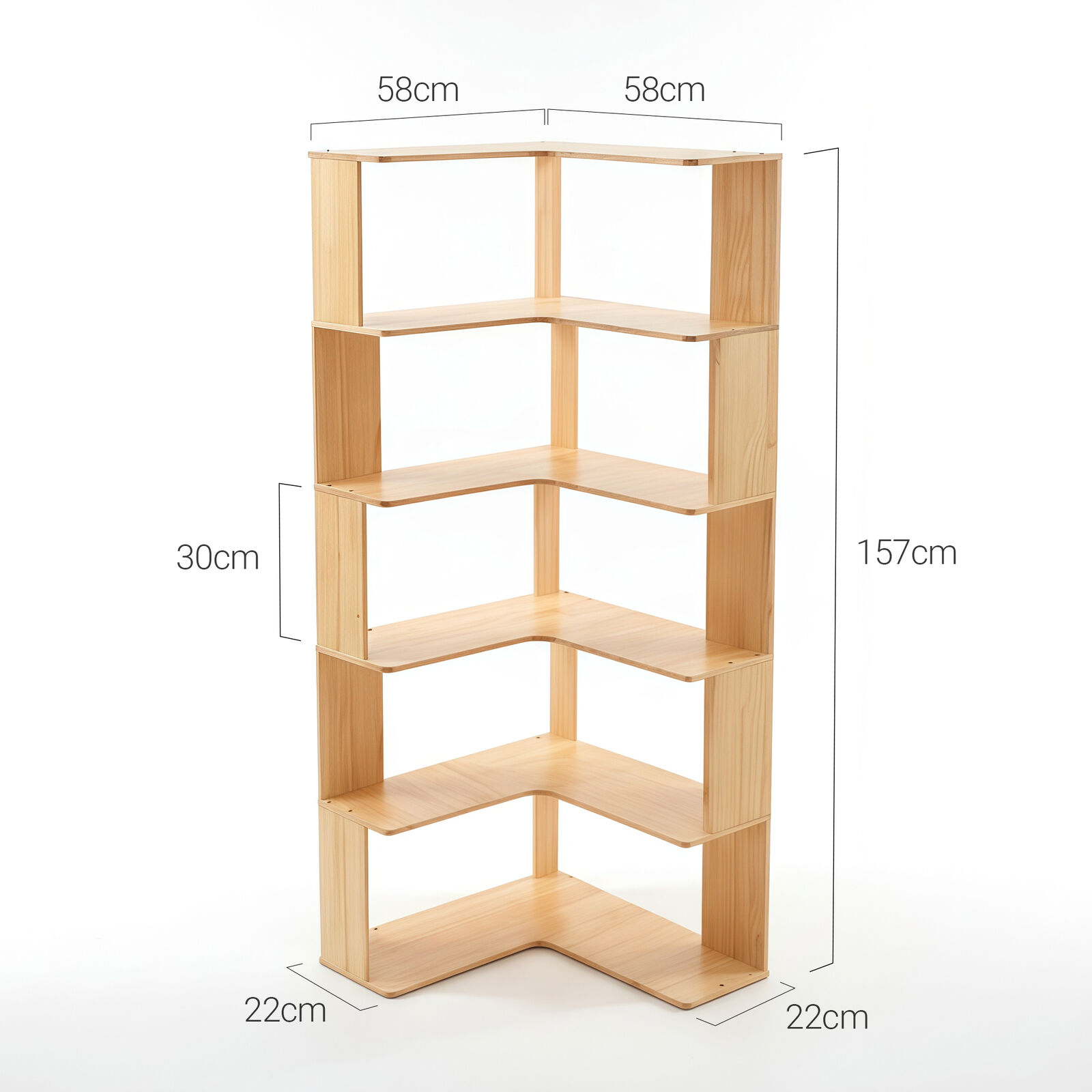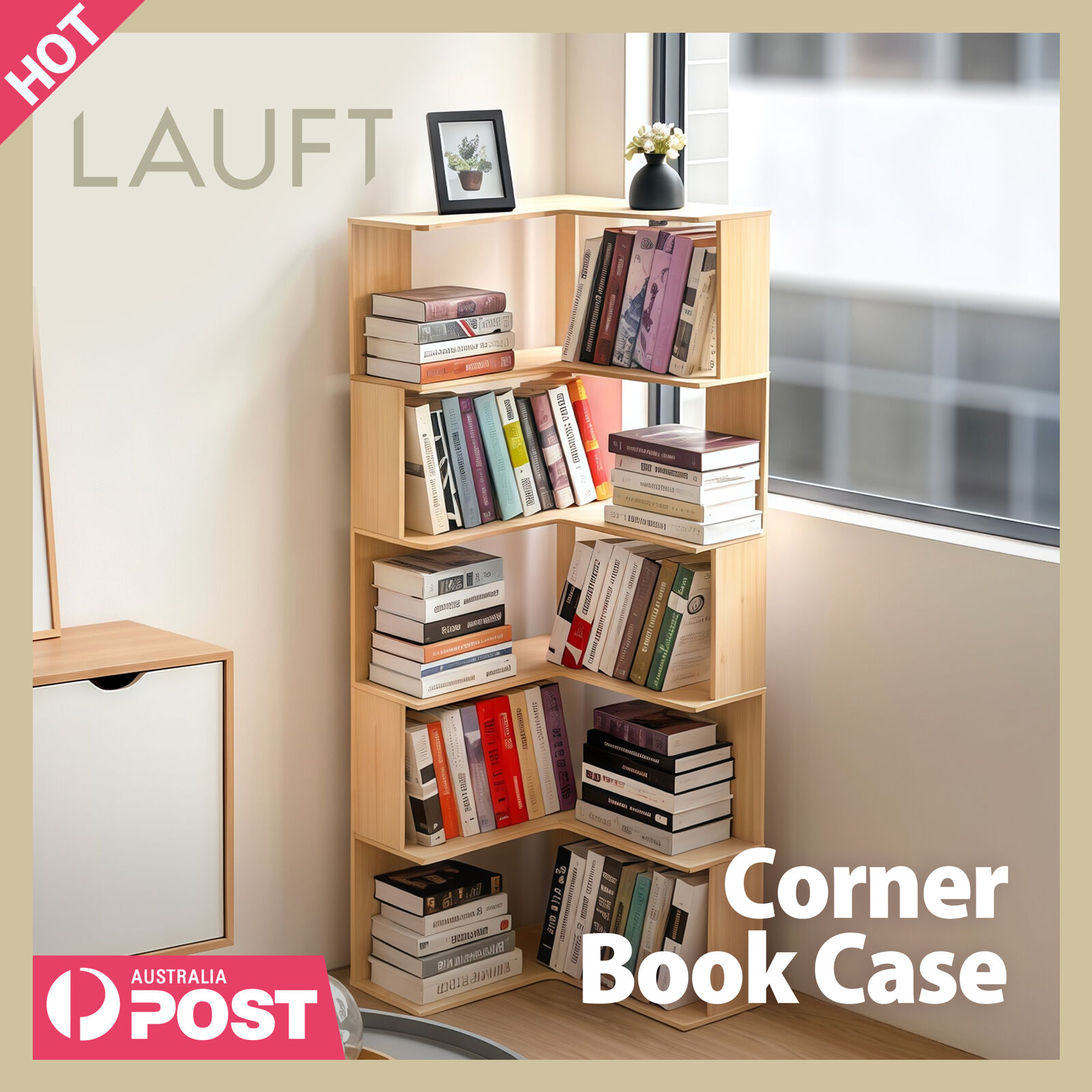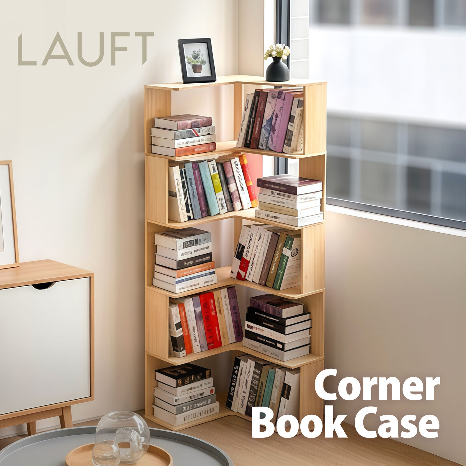 Lauft 5-Tier Bamboo Wood Corner Bookshelf, Freestanding Space Saving Bookcase, Vertical Plant Stand