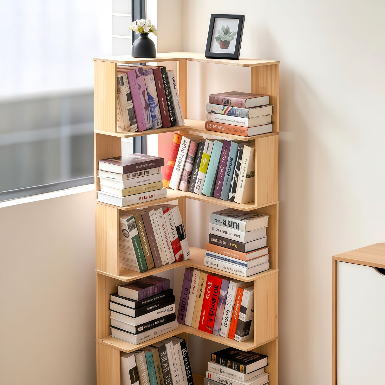 Make the most of unused corners with the Modern Bamboo Wood Corner Bookshelf a stylish, space-saving solution for any home. This uniquely designed shelving unit fits perfectly into corner spaces, transforming them into functional storage and display areas. Its tall, vertical profile provides ample room to organize books, décor, plants, or collectibles without taking up valuable floor space.