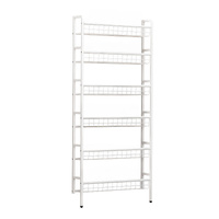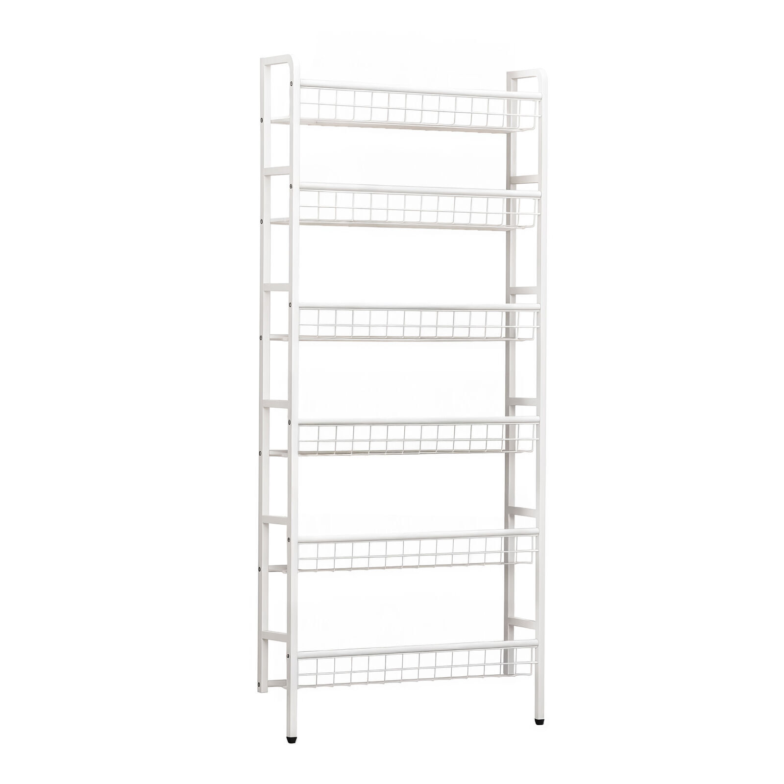 Maximize vertical space with this 6-tier wall-leaning metal behind-the-door storage shelf. Designed with a slim, breathable white metal frame and open wire shelves, it offers easy access and clear visibility for books, toys, or decor. Ideal for small rooms, entryways, or play areas, this space-saving organizer includes anti-tip hardware for added safety. Simple to assemble, it blends seamlessly with modern interiors while keeping essentials neatly organized.