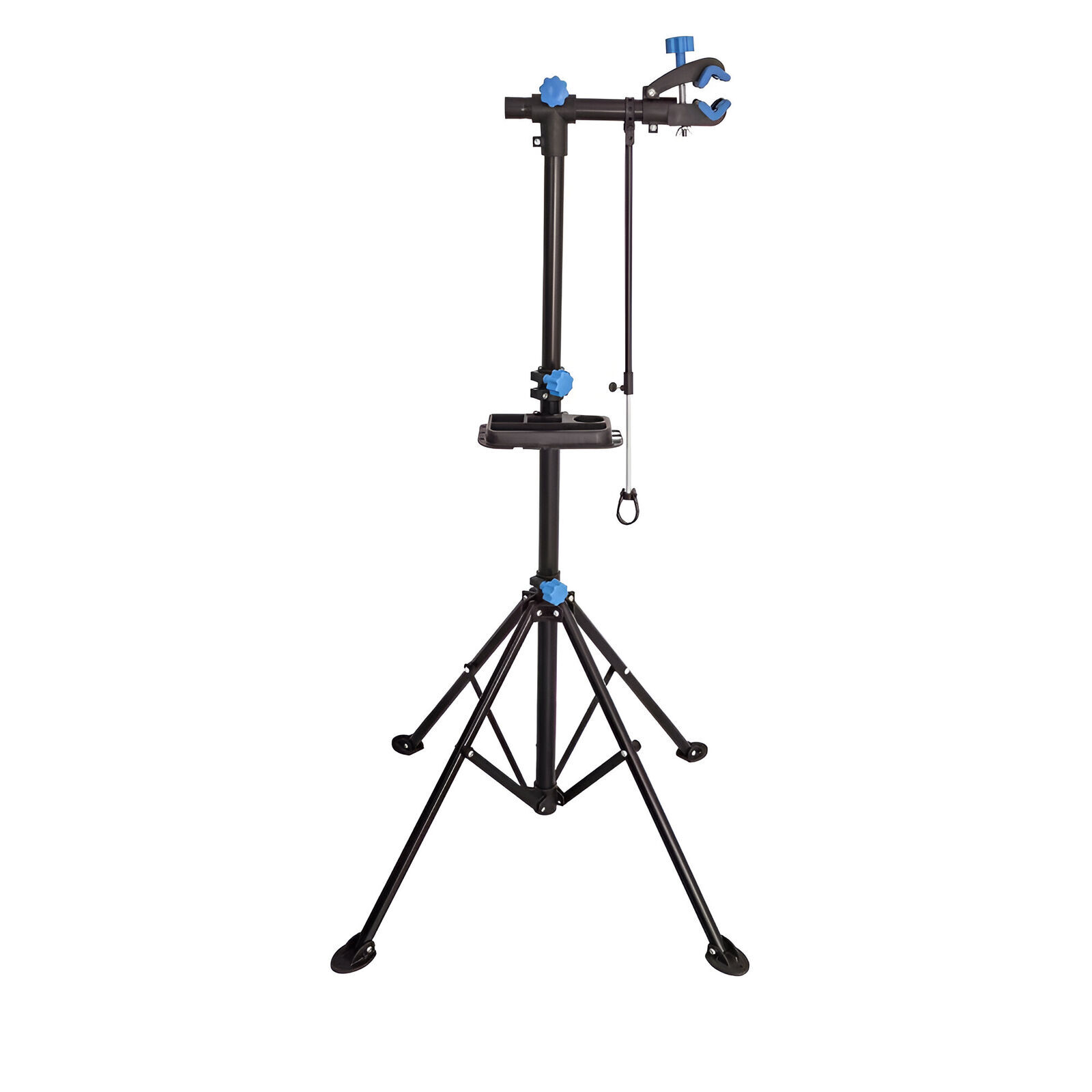 Adjustable Bicycle Repair Work Stand with 360° Clamp, Heavy Duty Foldable Bike Tripod and Bonus Tool Tray for Bike Home Maintenance Rack