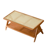 MIUZ American Cherry Wood Coffee Table Modern Wooden Tables, Rattan Top Center Table For Living Room