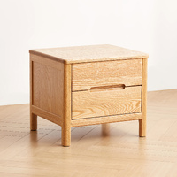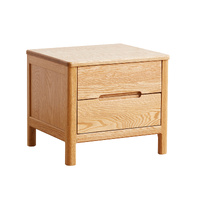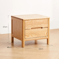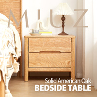 MIUZ American Solid Oak Wood Bedside Table, Side Storage End Table w/ 2 Drawers & Recessed Handles,