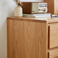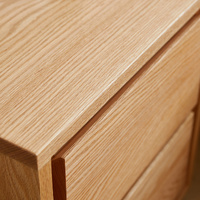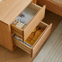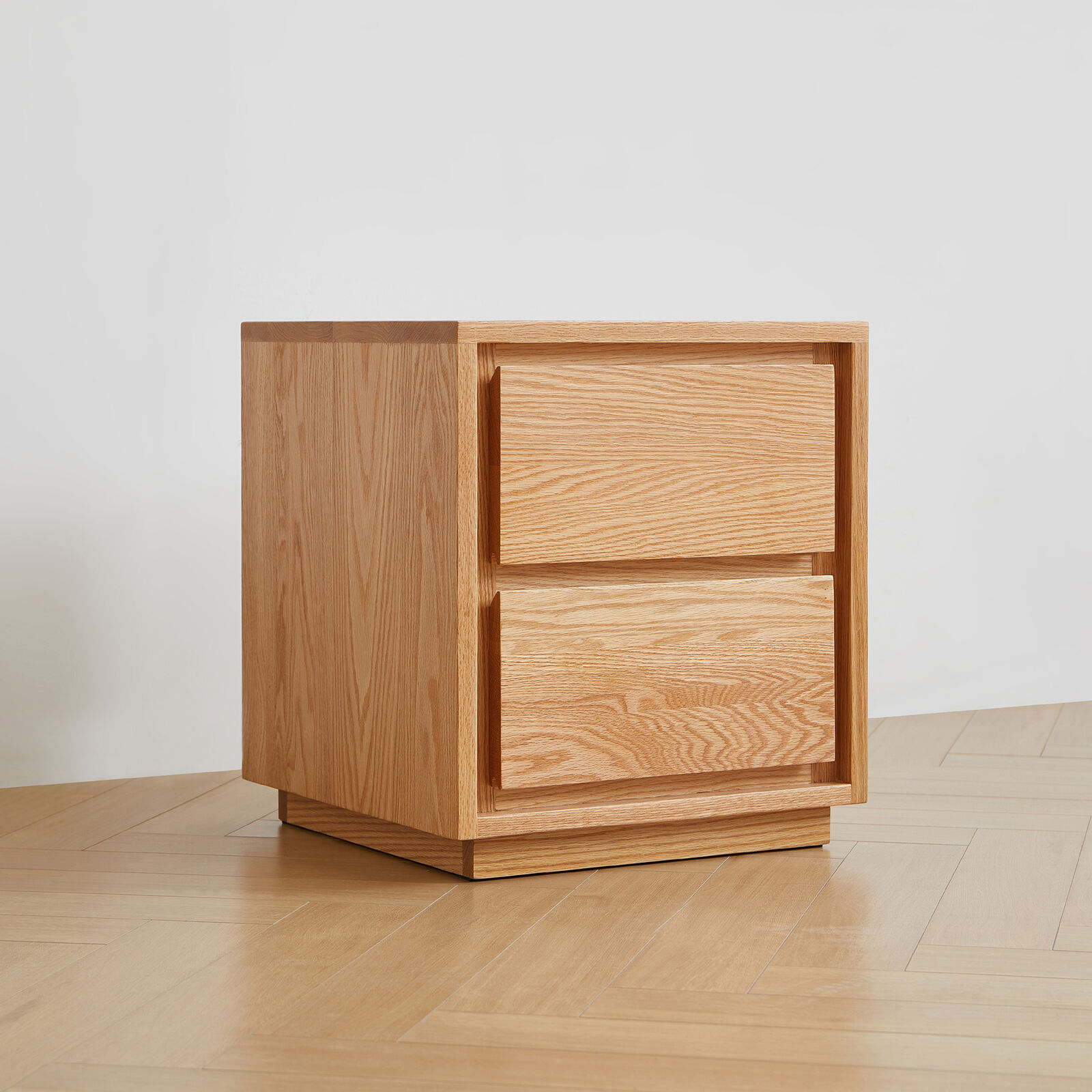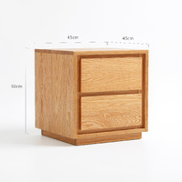 American Solid Oak Wood Side Table Side Storage End Table w/ 2 Drawers, Minimalist Nightstand Organizer w/ Open Rectangular Base