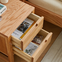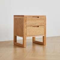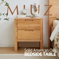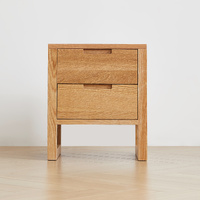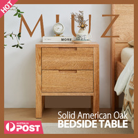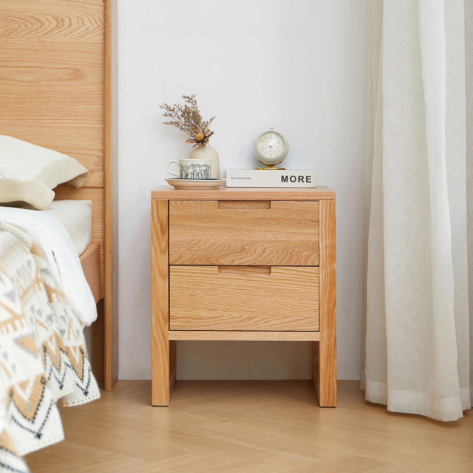 MIUZ American Solid Oak Wood Side Table Side Storage End Table w/ 2 Drawers, Minimalist Nightstand O