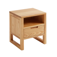 Add warmth and function to your space with the Minimalist Bedside Table, crafted from American Solid Oak Wood. Featuring a natural finish, one drawer, and an open shelf, it offers both concealed and accessible storage. Its clean lines, cut-out handle, and compact design make it ideal for modern bedrooms, guest rooms, or apartments.