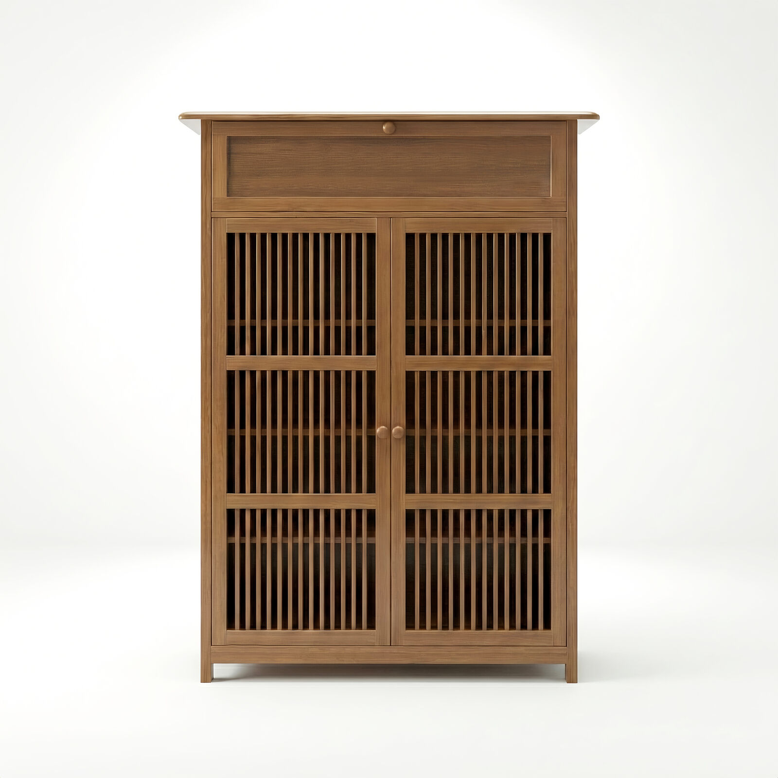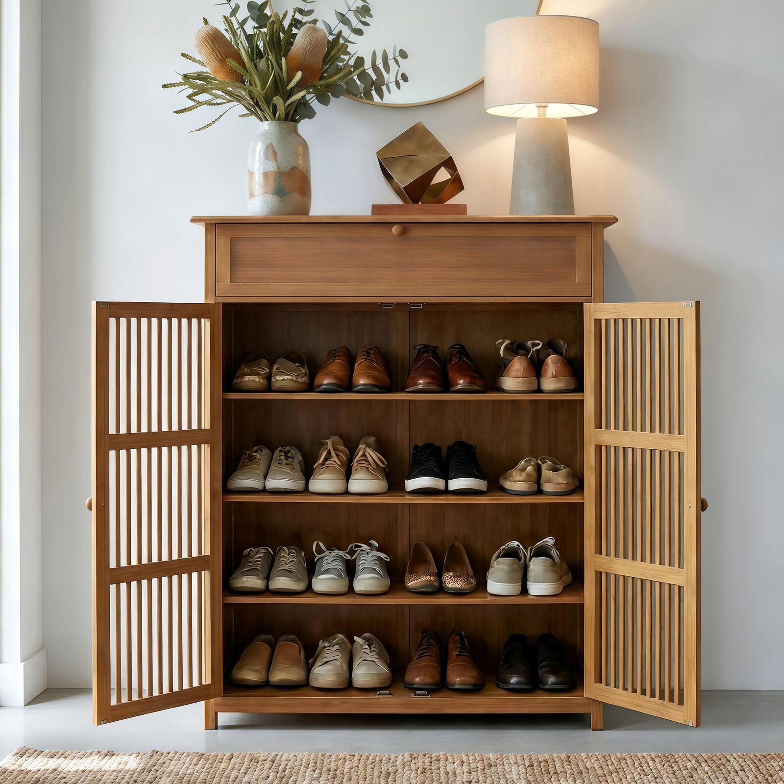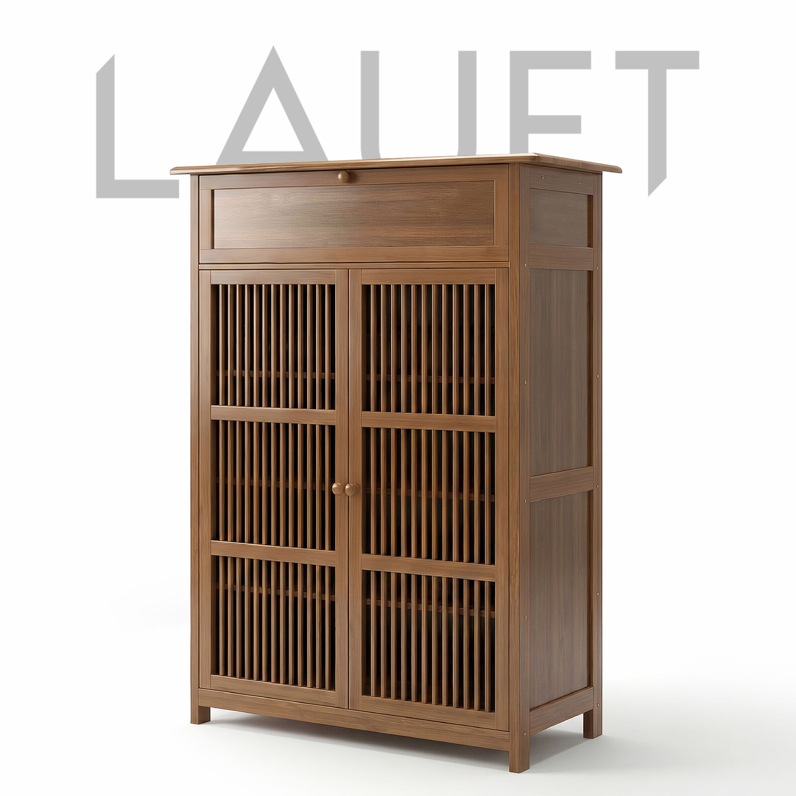 Lauft Bamboo Wood Shoe Storage Cabinet | 2- Door, 4 Tier Shoe Rack | Slatted Doors, Top Drawer, Larg