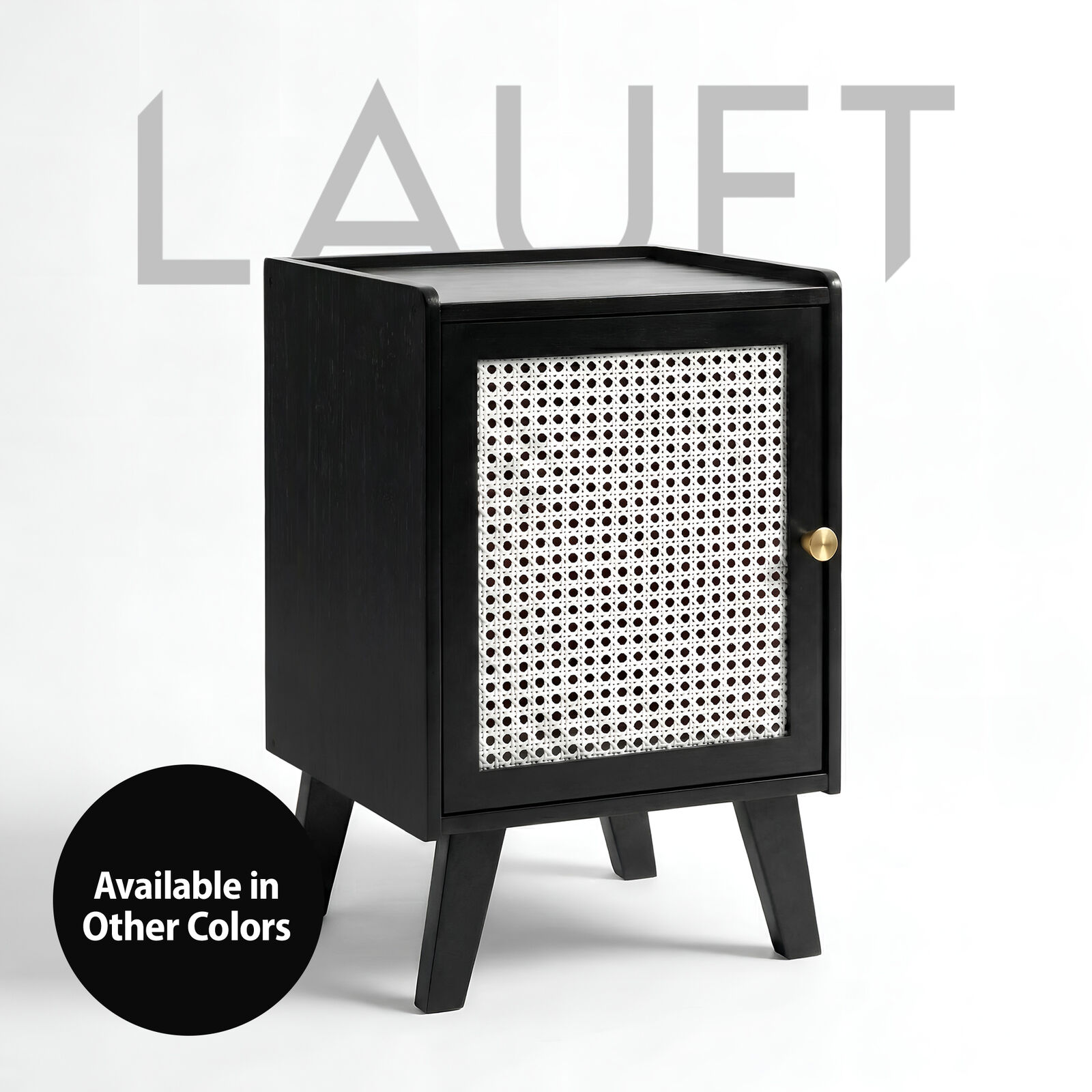 Lauft Black Bamboo Wooden Bedside Table, Durable Side Storage End Table w/ Drawer, Modern Nightstand