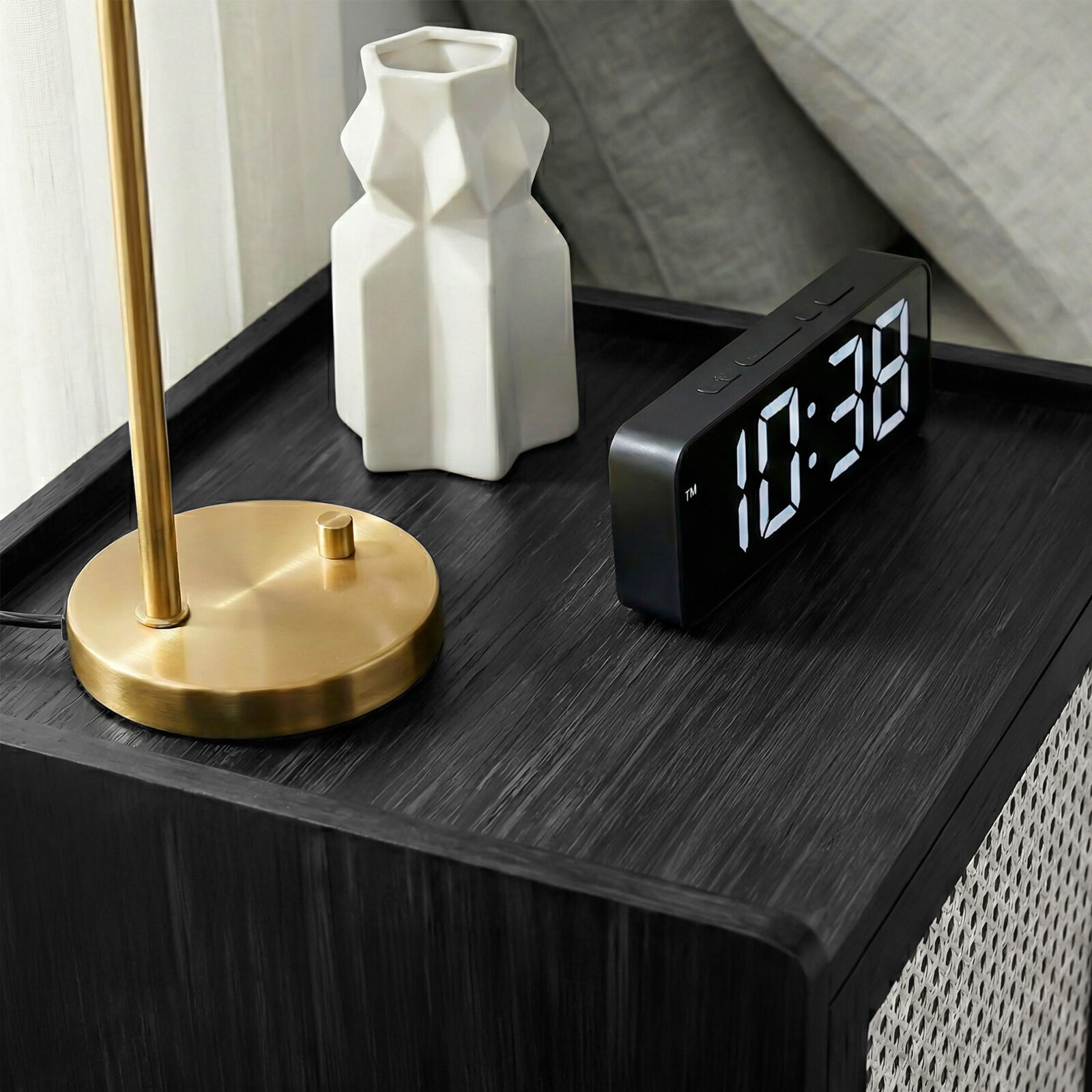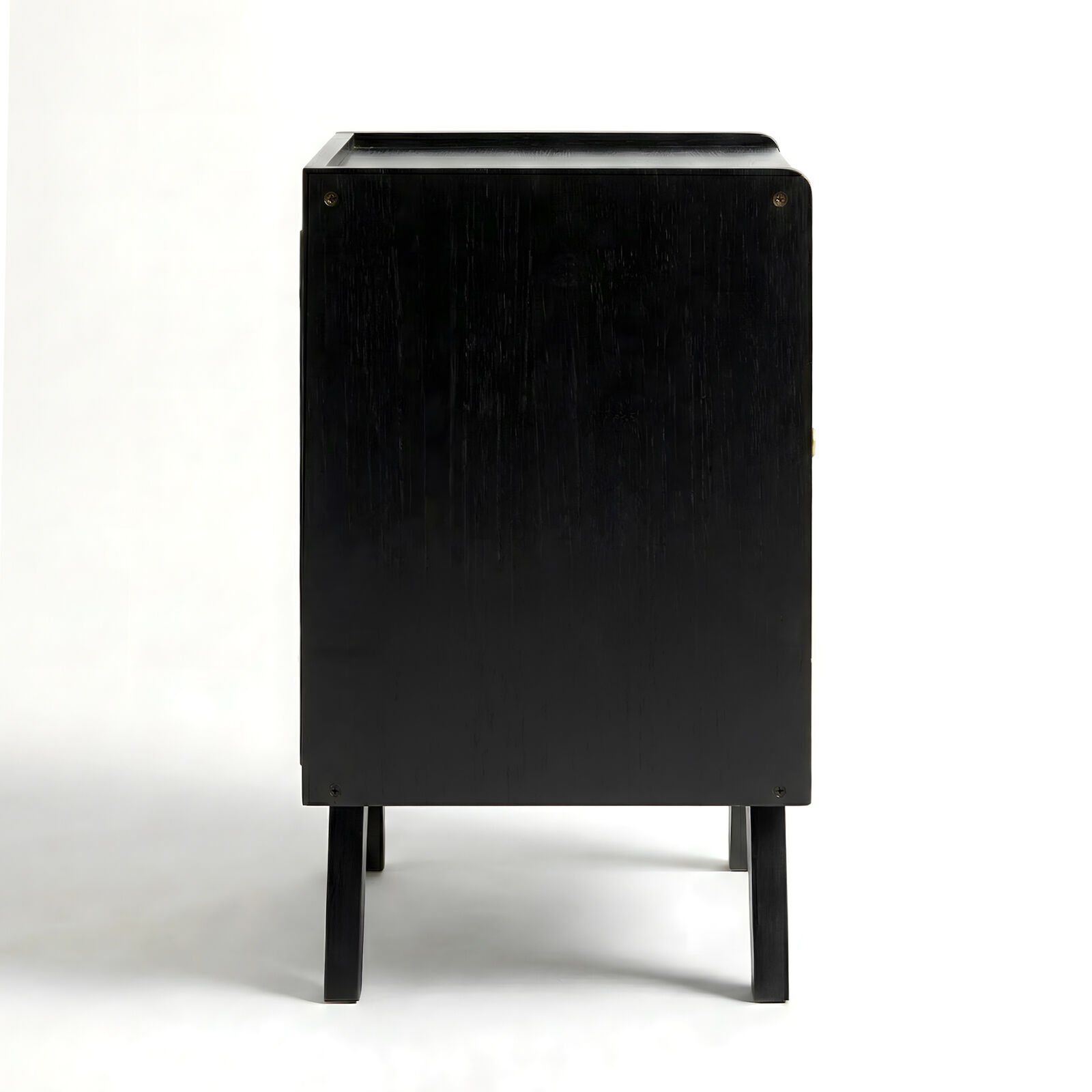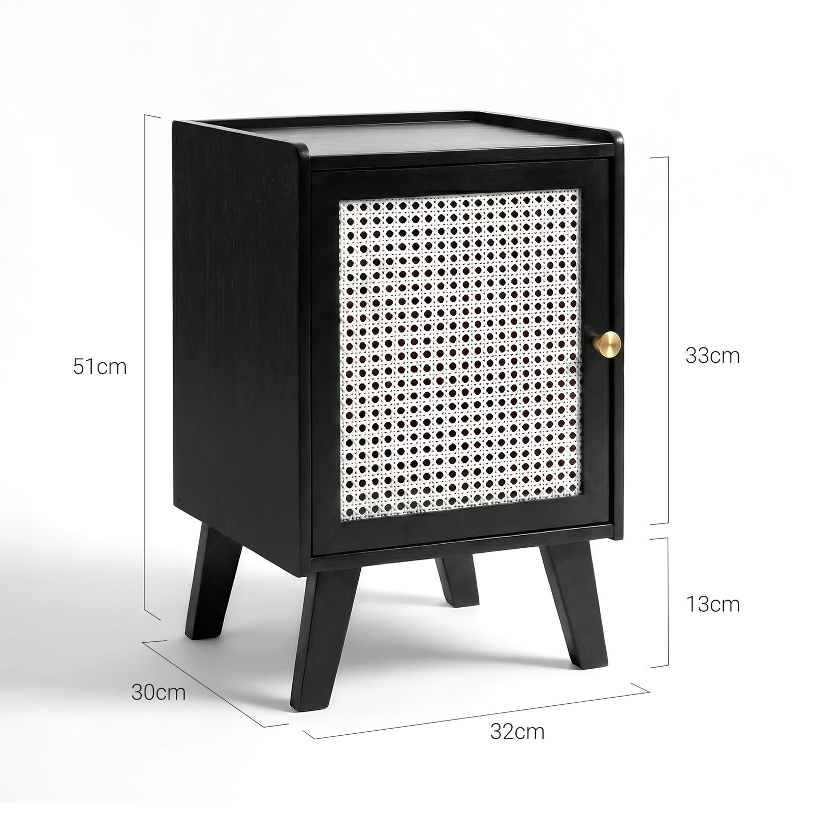 Add natural charm to your space with the Black Bamboo Wood Bedside Table. Crafted from durable bamboo wood, this stylish nightstand features a rattan-inspired door, a sturdy build, and a spacious storage compartment. Compact yet functional, its ideal for bedrooms, apartments, and cozy living areas. With its clean, modern design and elevated legs, this bedside table is both practical and decorative-an ideal addition to any home.