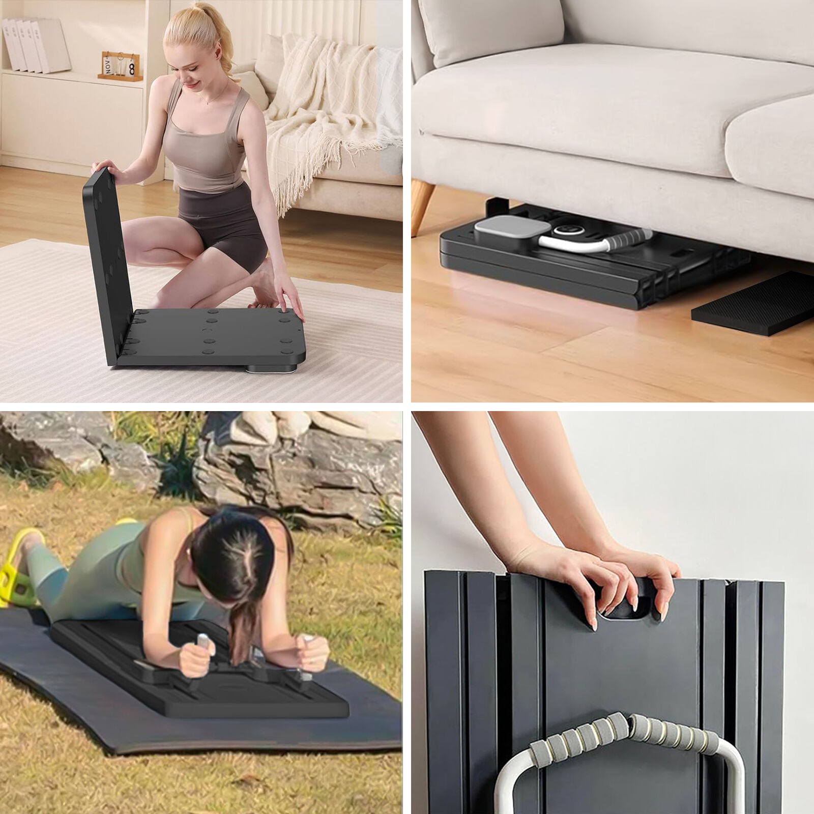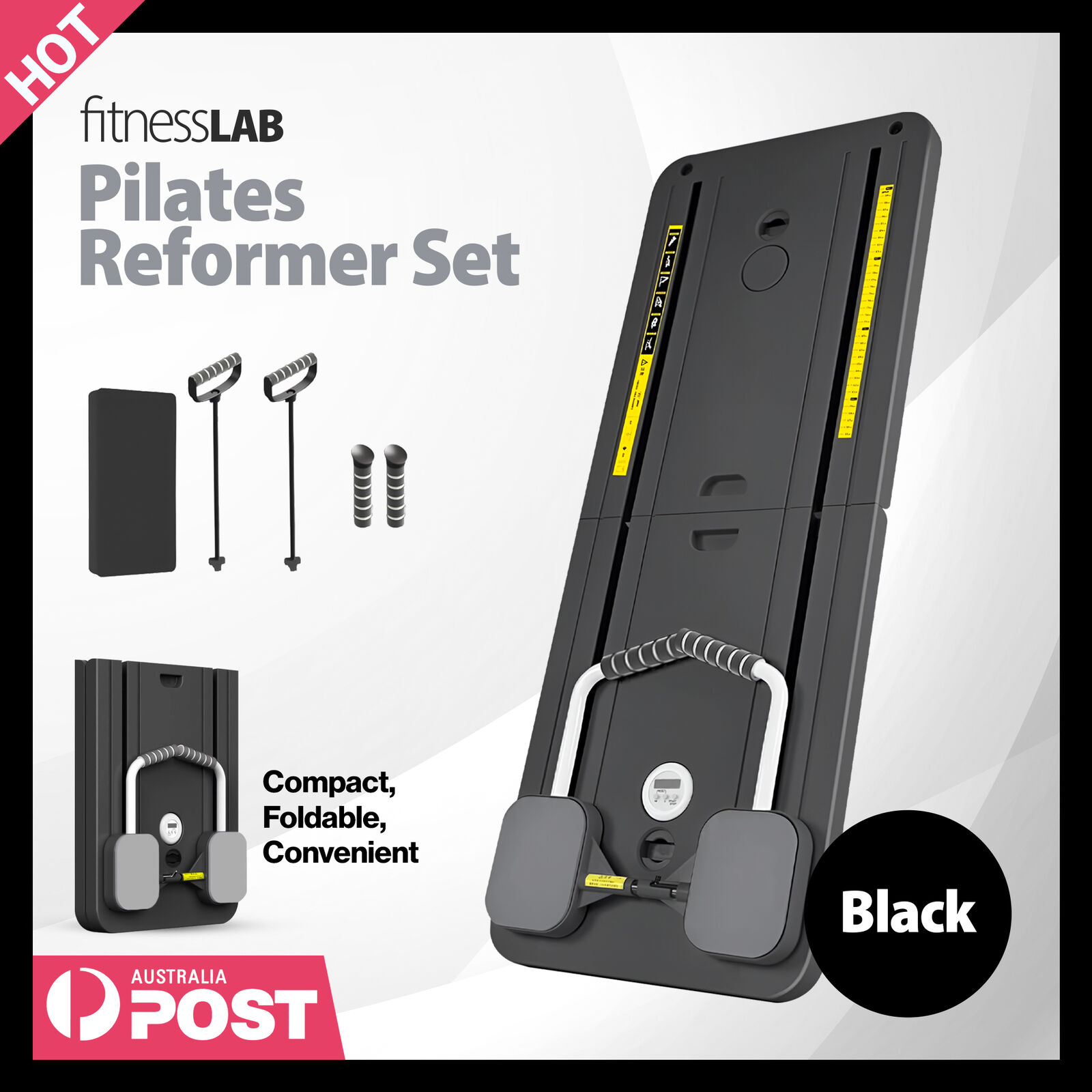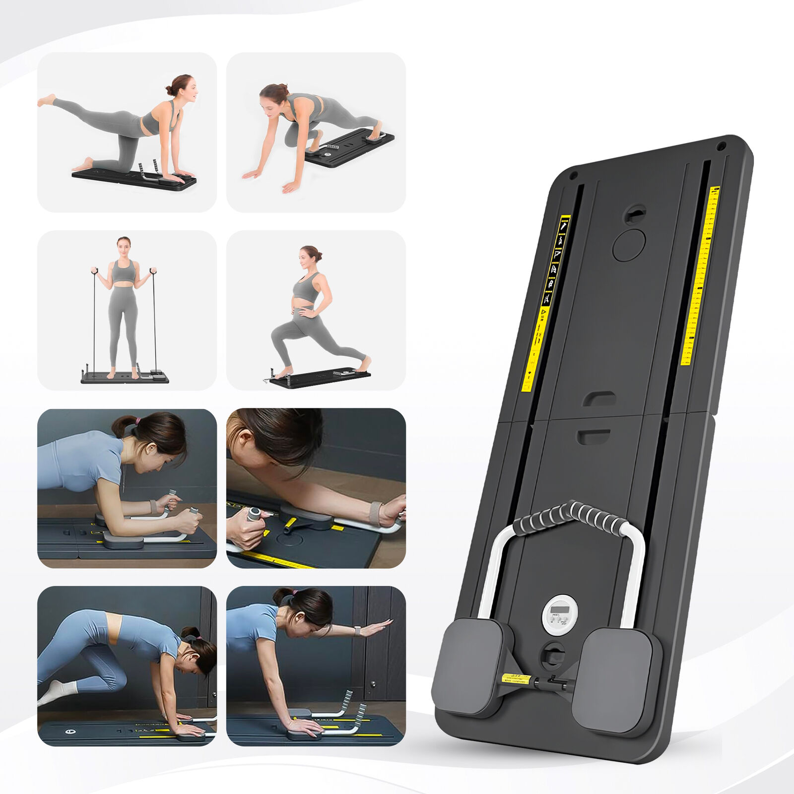 Black Pilates Board Reformer Set - Foldable home gym & yoga equipment for workout, strength training, core & flexibility, space-saving design
