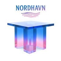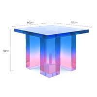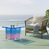 Golden Blue Acrylic Bedside Table, Modern Nightstand End Table, Stylish Transparent Accent Table, Lightweight Coffee Table w/ Compact Design