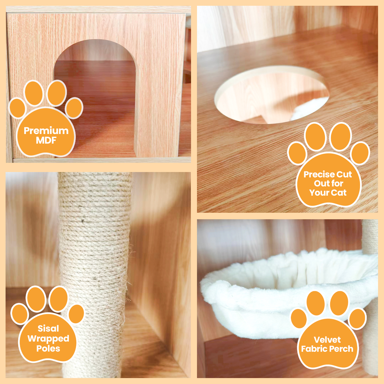 • Sturdy Sisal Poles - Encourages healthy scratching behaviour, saving your furniture from claw marks and offering a durable surface for your cat to sharpen their claws.