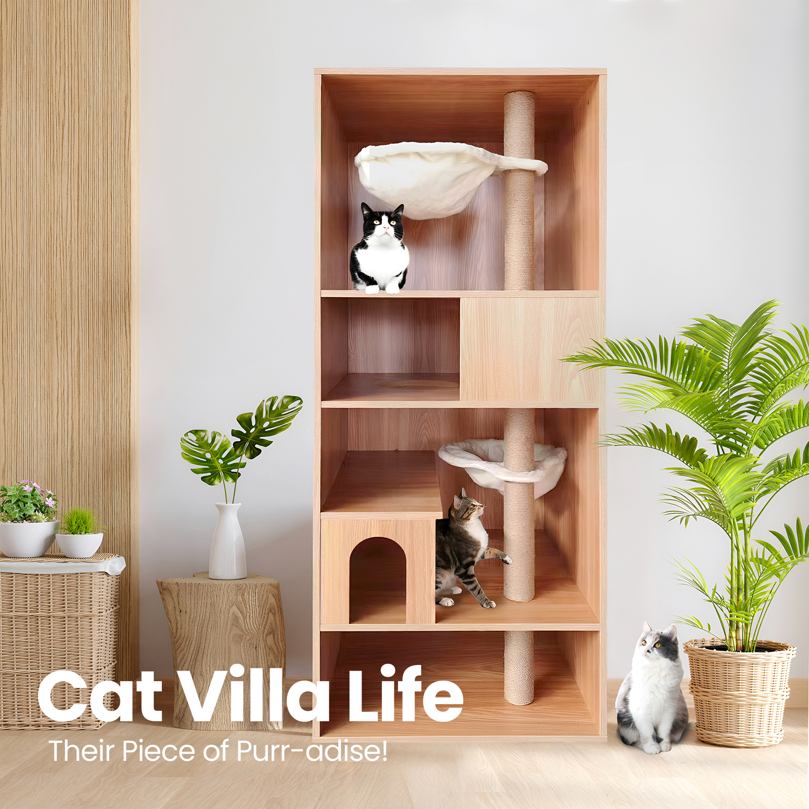 • Multiple Levels of Lounging and Play - Keeps your cat entertained and engaged, providing various platforms to explore, lounge, and play.