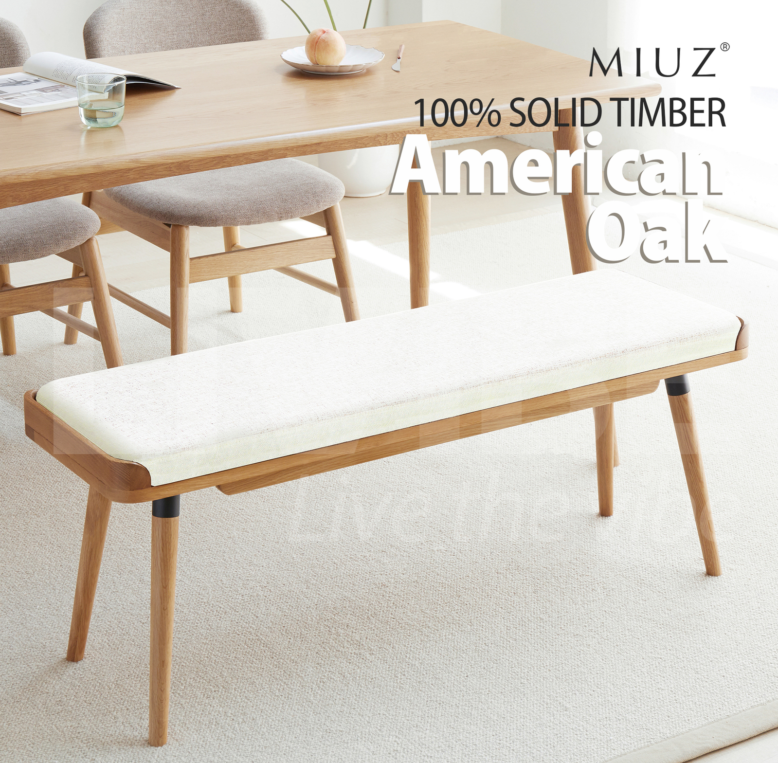 MIUZ Dining Bench Solid Timber American Walnut Wood Kitchen Entryway Bedroom