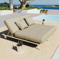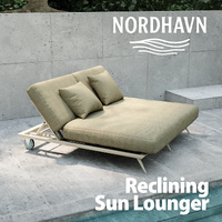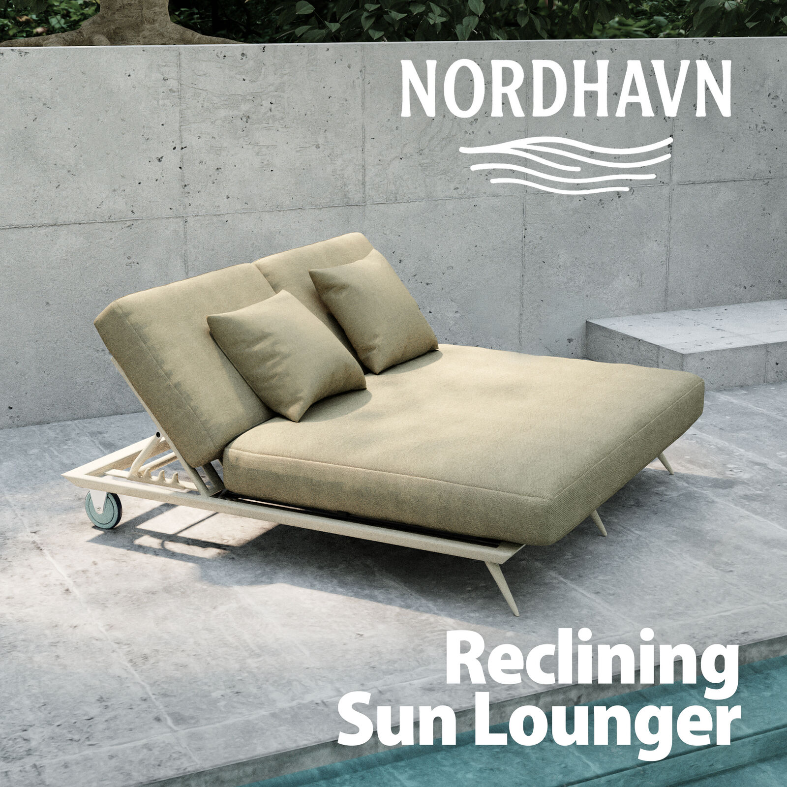 Nordhavn Double Light Brown Reclining Sun Lounger, Outdoor Folding Sunbed, Sofa Day Bed, Lightweight