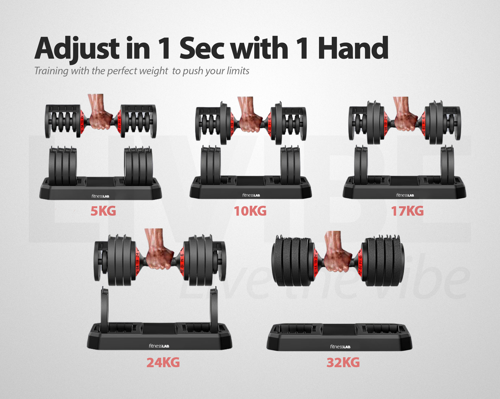 FitnessLab Adjustable Dumbbells Dumbbell Set Weight Dumbbells Plates Exercise Fitness Gym 25kg or 32kg