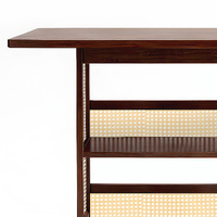 - Woven Rattan-Style Panels - Decorative accents give it a stylish, modern touch.