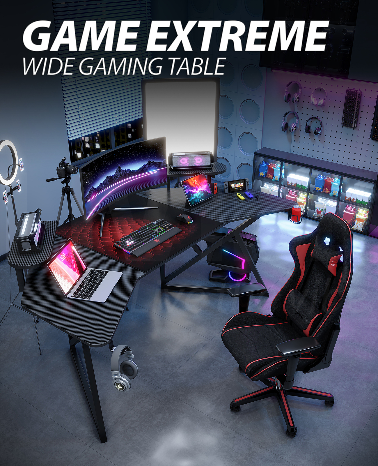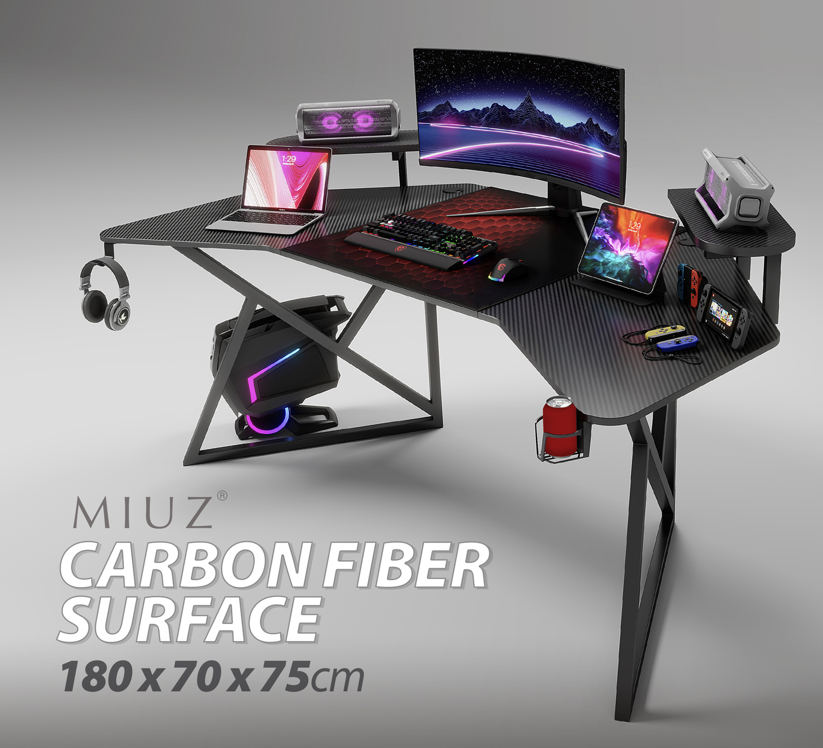 Gaming Desk Office Computer Desk Home Study Work Table Racer Carbon Fiber Table RGB LED 120cm