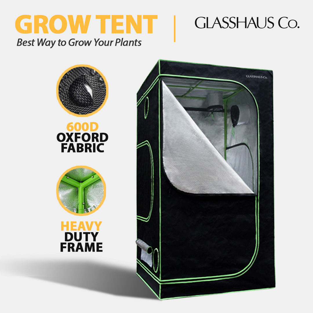 Glasshaus Grow Tent Kits Hydroponic Indoor Grow System Plant Real 1680D Oxford 11 Sizes