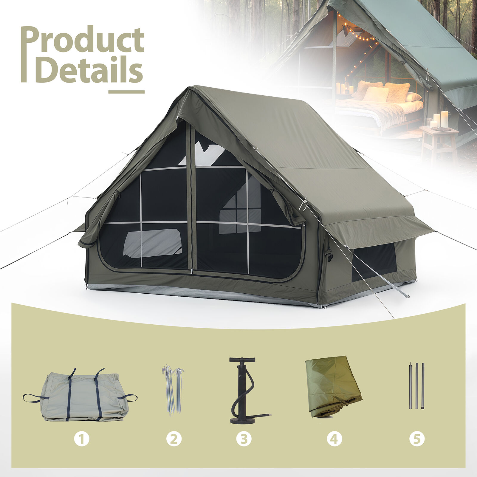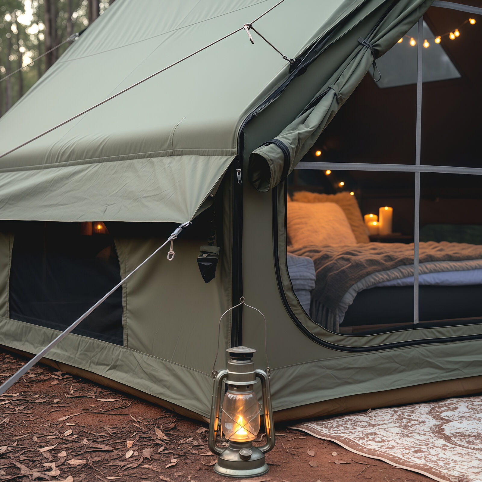 Outdoor360 Inflatable Tech Cotton Tent, Portable All-Season Pop Up Waterproof, Breathable, Fire-Resi