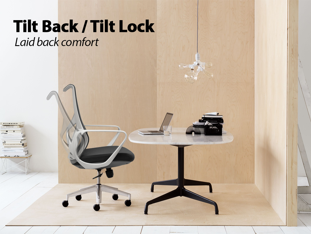 FORWARD TILT MECHANISM - Adjusts the angle of the seat. The front of the seat can be tilted up or down. This reduces the pressure on the lower back, ensures proper posture, and alleviates blood flow to the legs and feet.