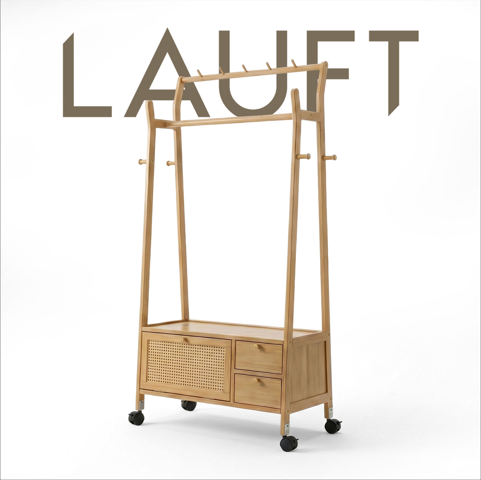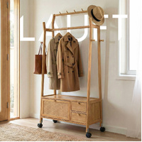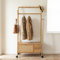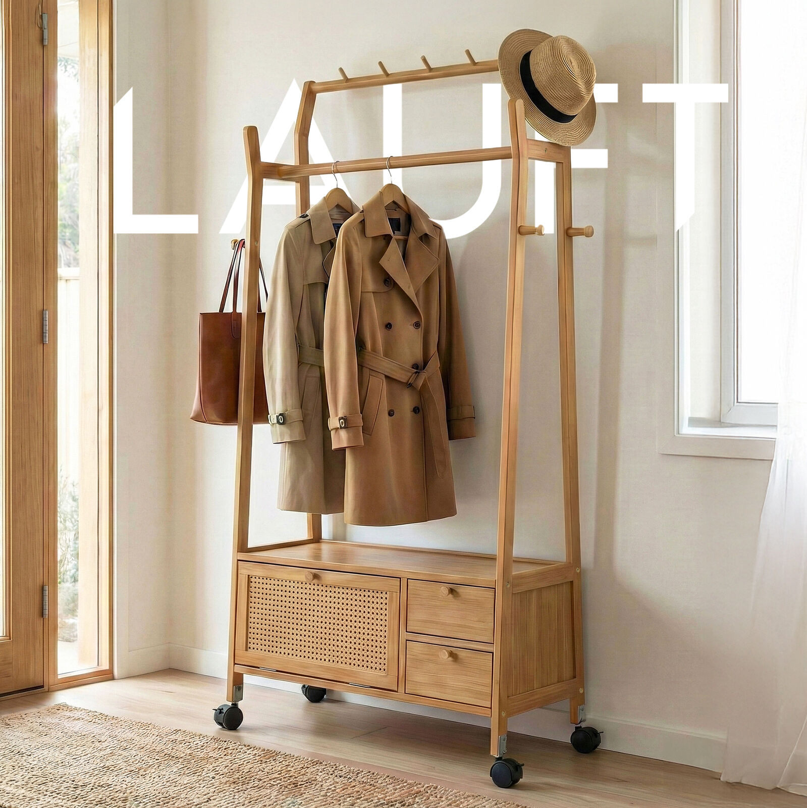 Lauft Modern Bamboo Wooden Coat Rack | Freestanding Clothes Rack | Storage Closet Shoe Wardrobe Cabi