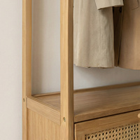 Upgrade your storage with this modern bamboo clothing rack and wardrobe organiser. Featuring open hanging space and concealed compartments, it keeps clothes and essentials neatly arranged while reducing clutter.