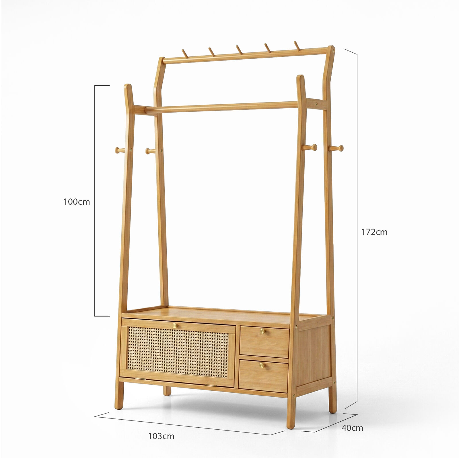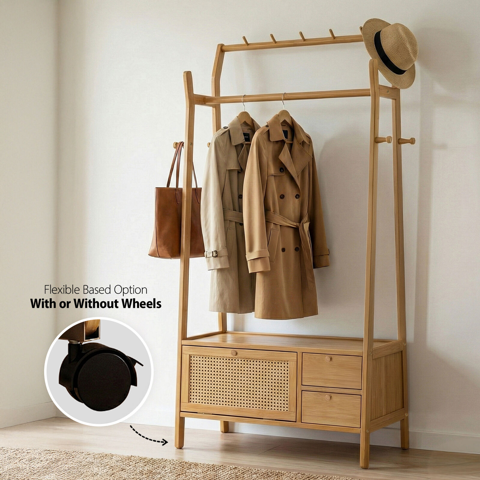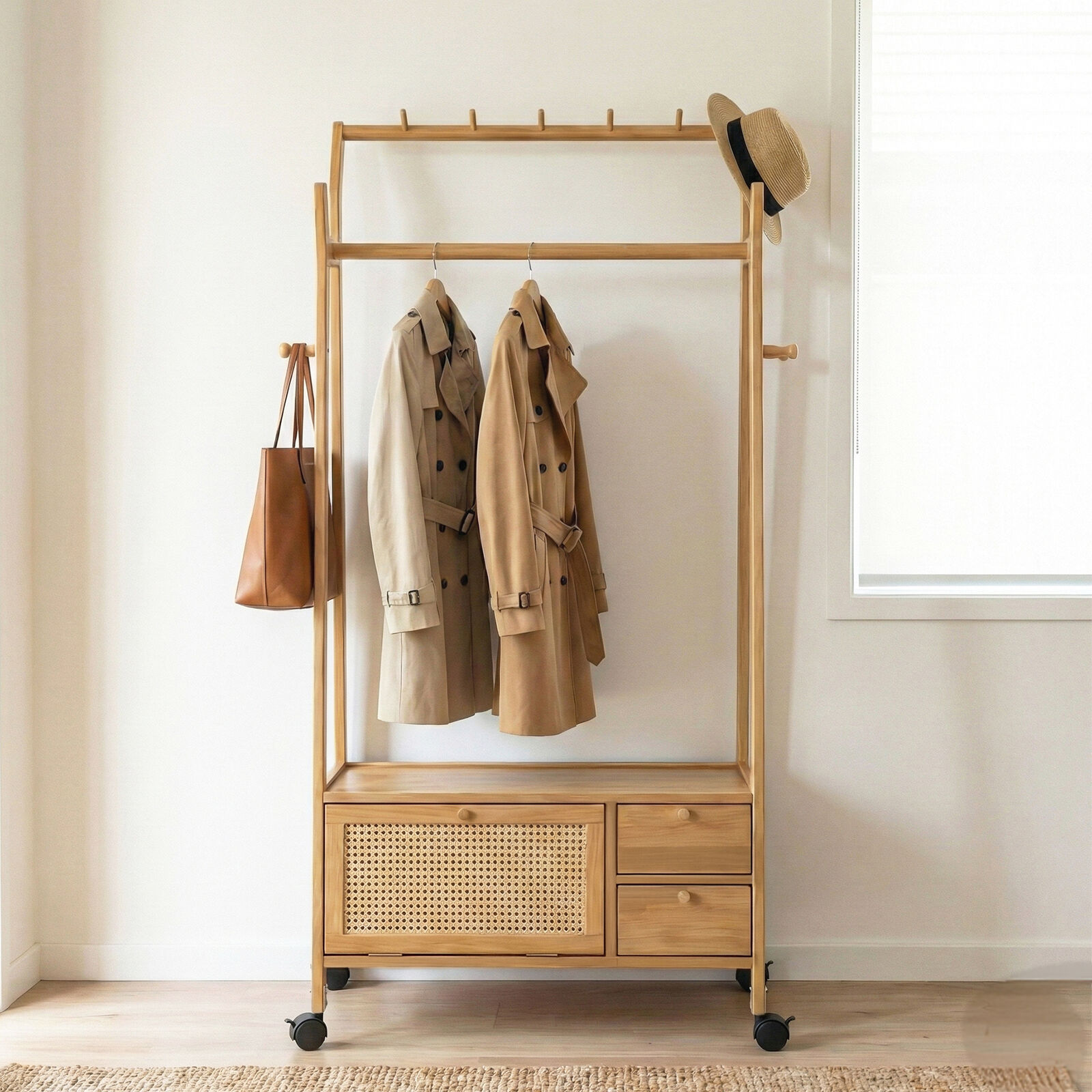 Made from durable natural bamboo with a rattan-style accent, it's a stylish space-saving solution for bedrooms, apartments, or entryways.