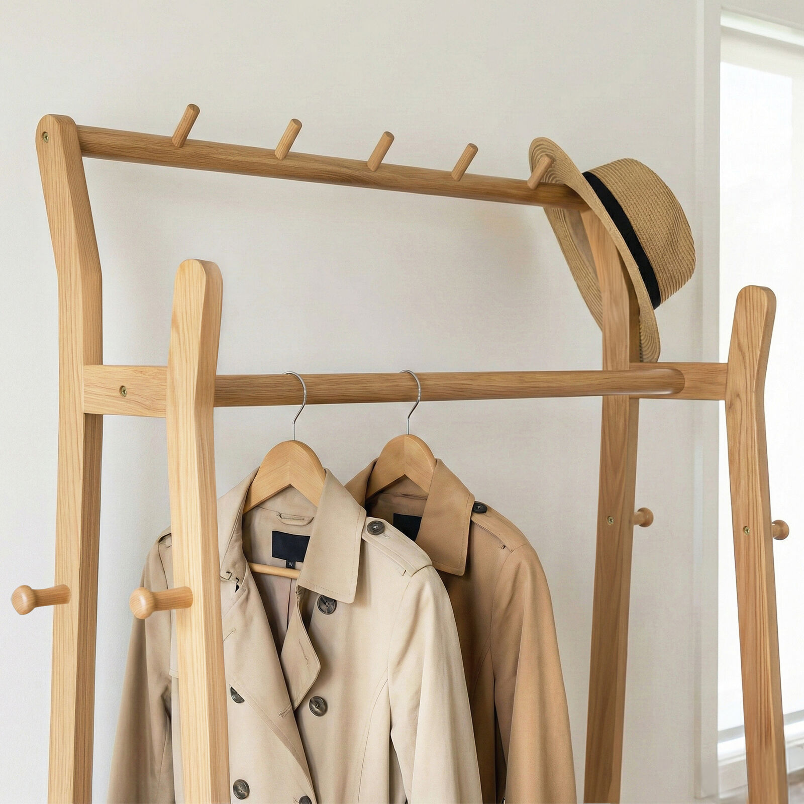 - Full-Length Clothing Rail - Provides ample hanging space for coats, dresses, shirts, and daily outfits