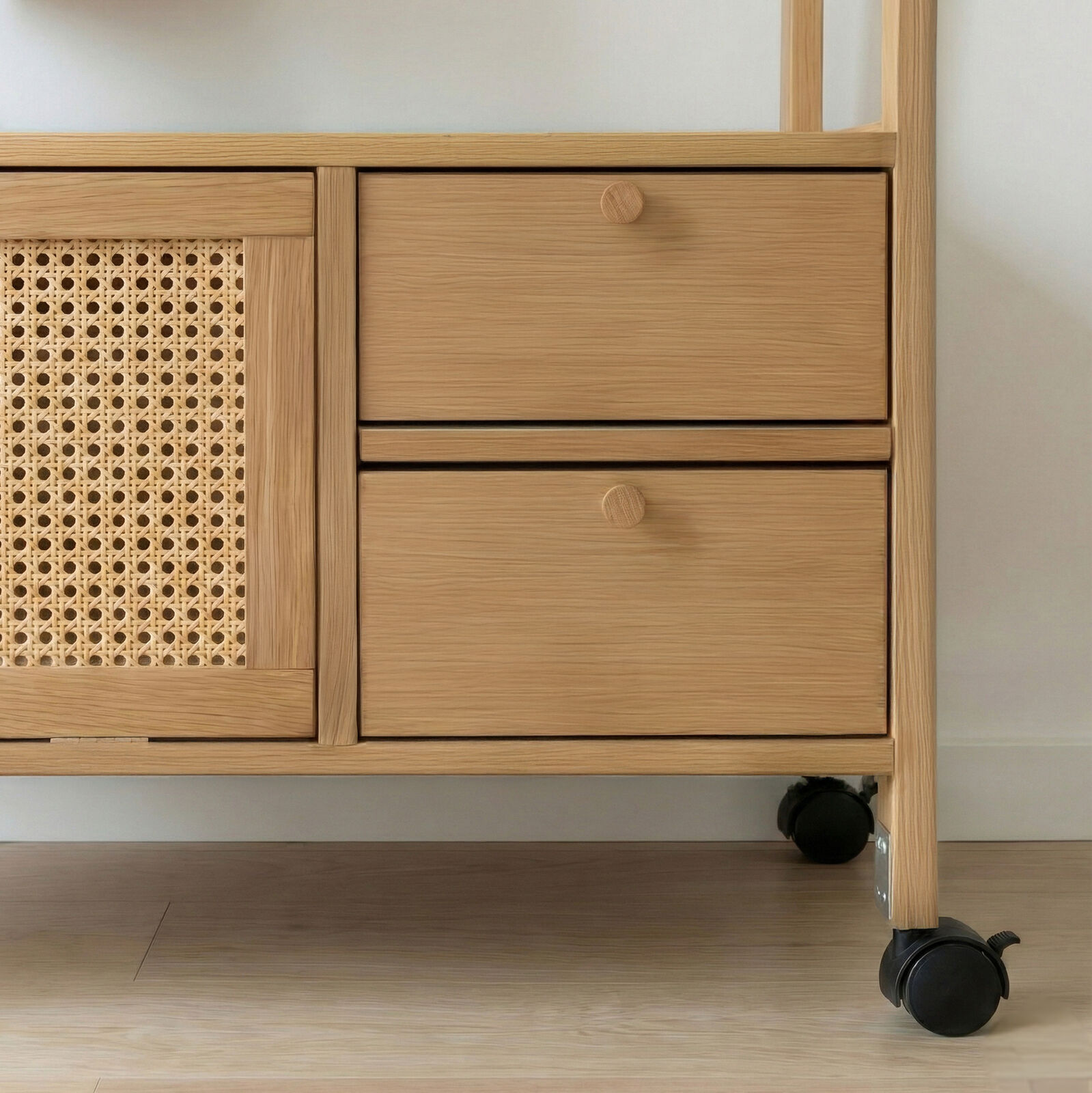 - Rattan-Style Accent Panel - Adds a modern touch with natural texture