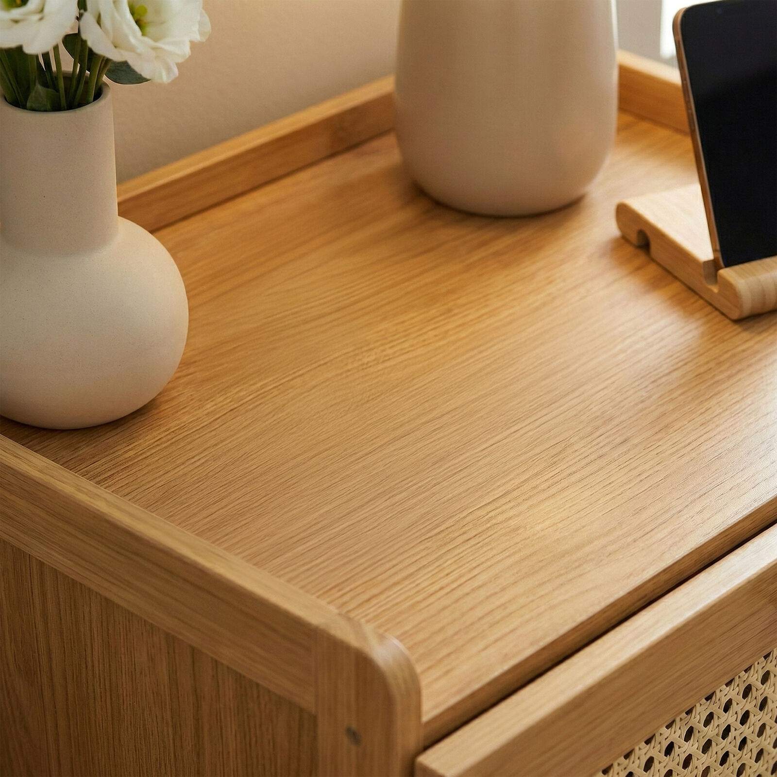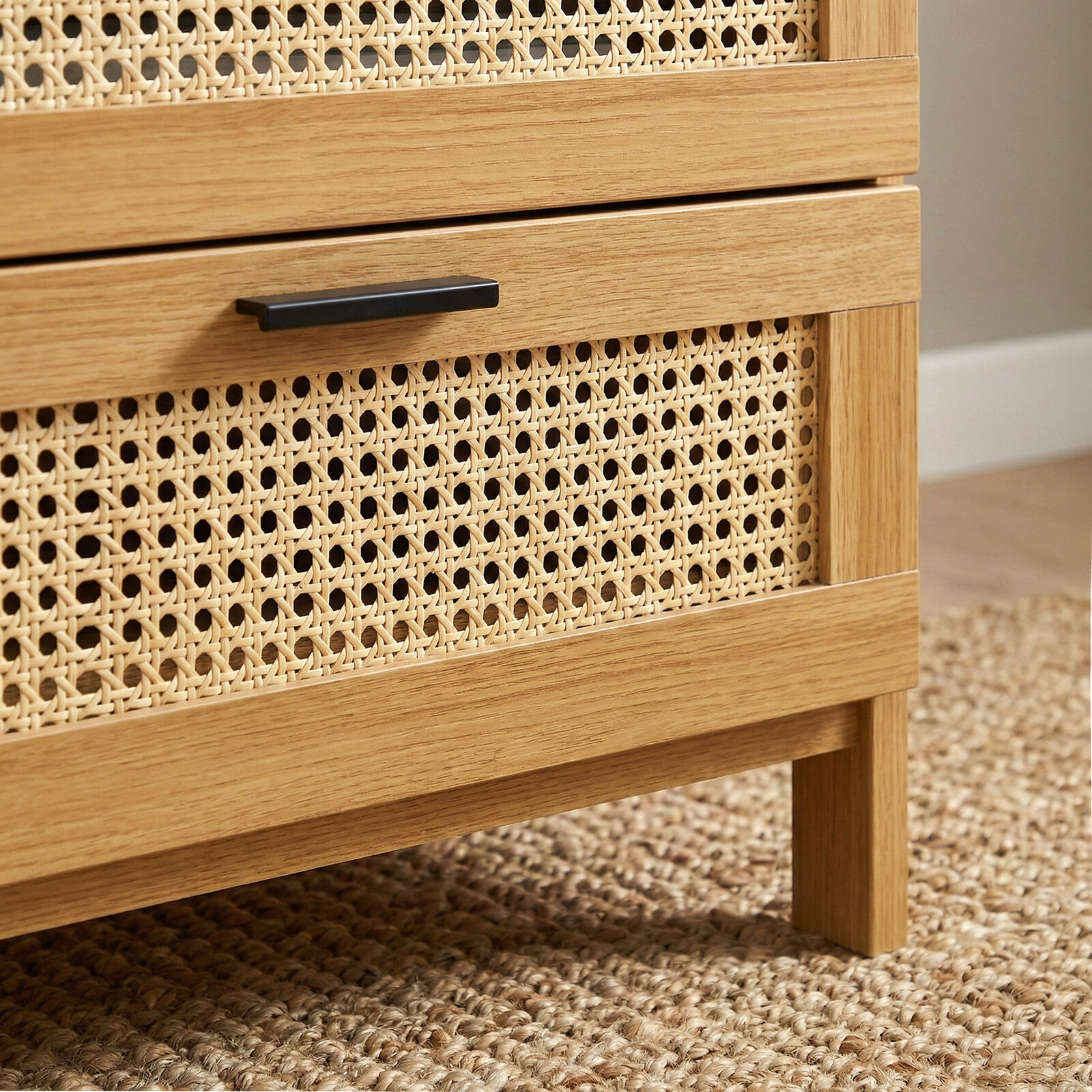 - Modern Natural & Rattan Design - Crafted from bamboo wood and paired with stylish rattan-style drawer fronts, blending warm natural tones with a fresh, boho-inspired look.