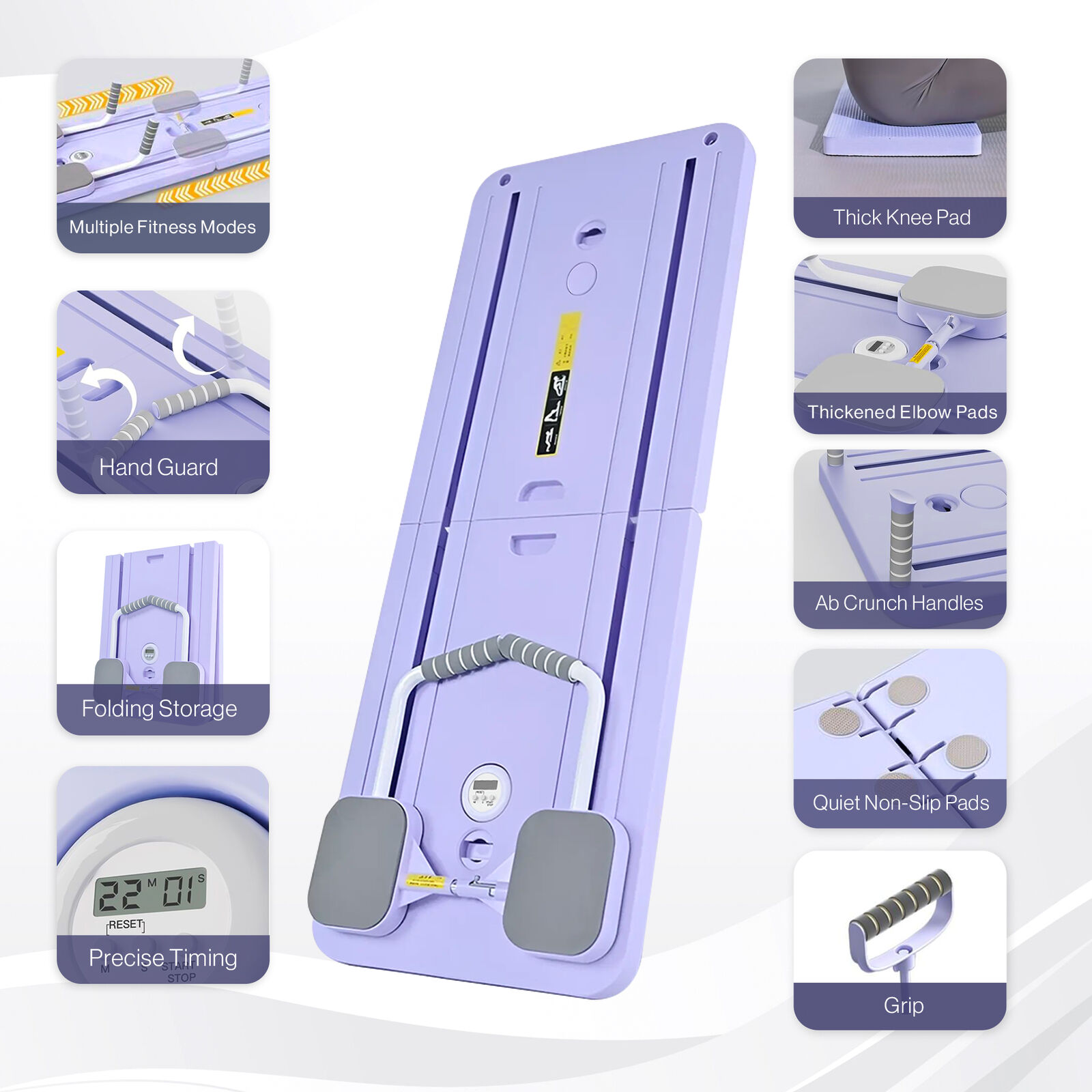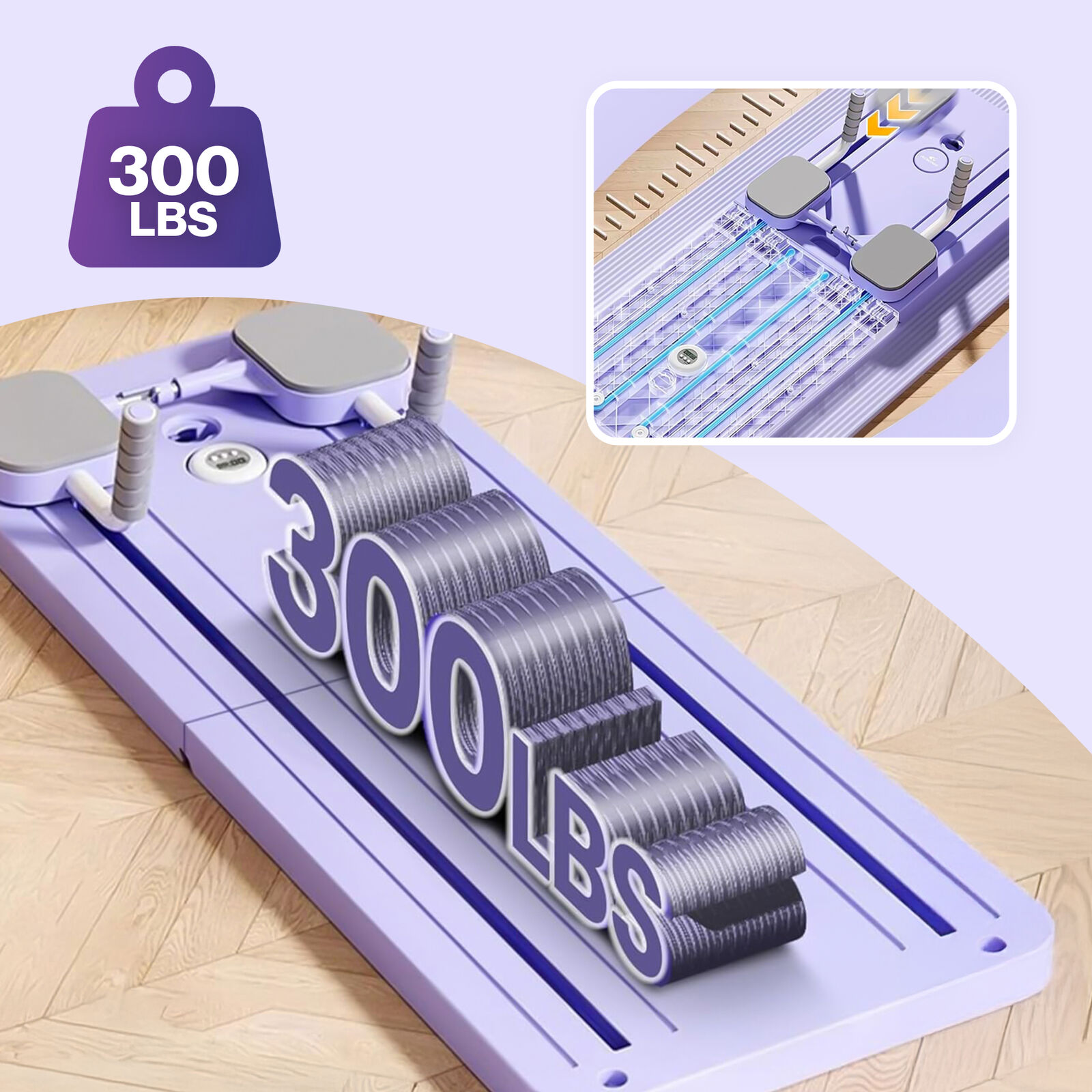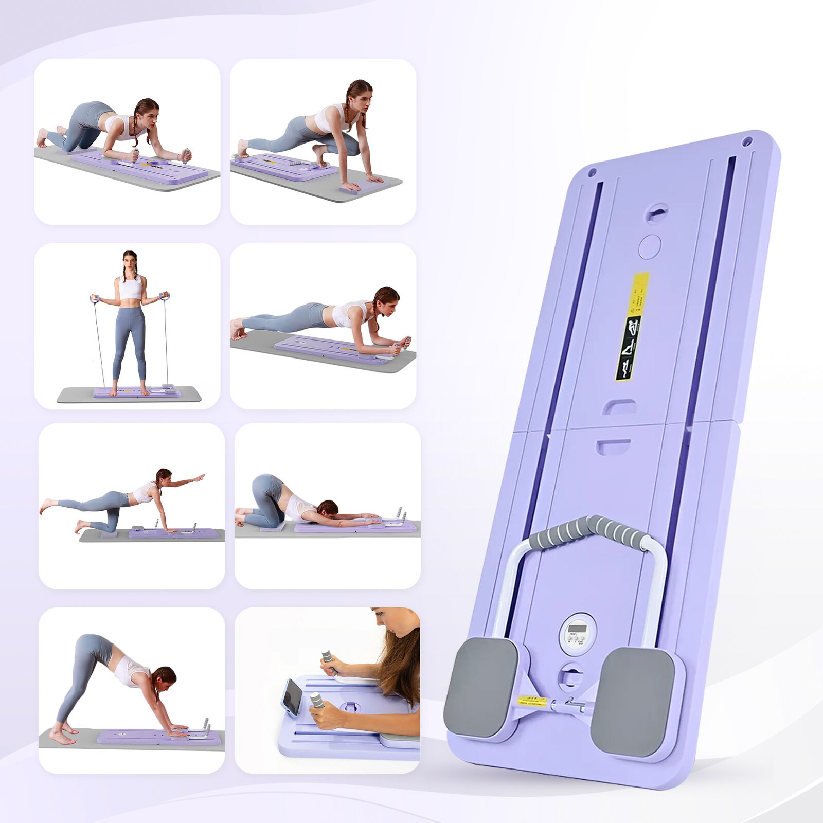 Purple Pilates Board Reformer Set - Foldable home gym & yoga equipment for workout, strength training, core & flexibility, space-saving design