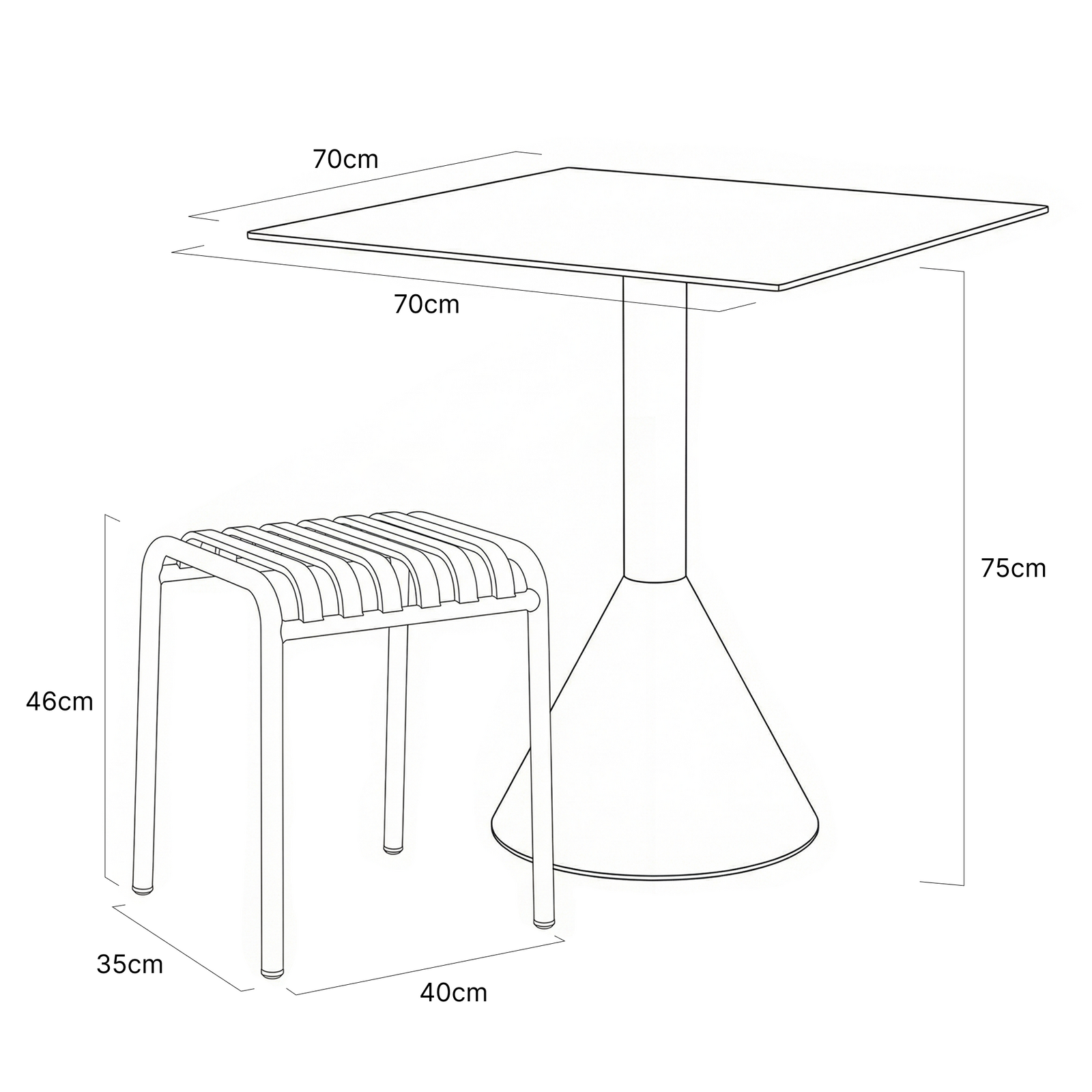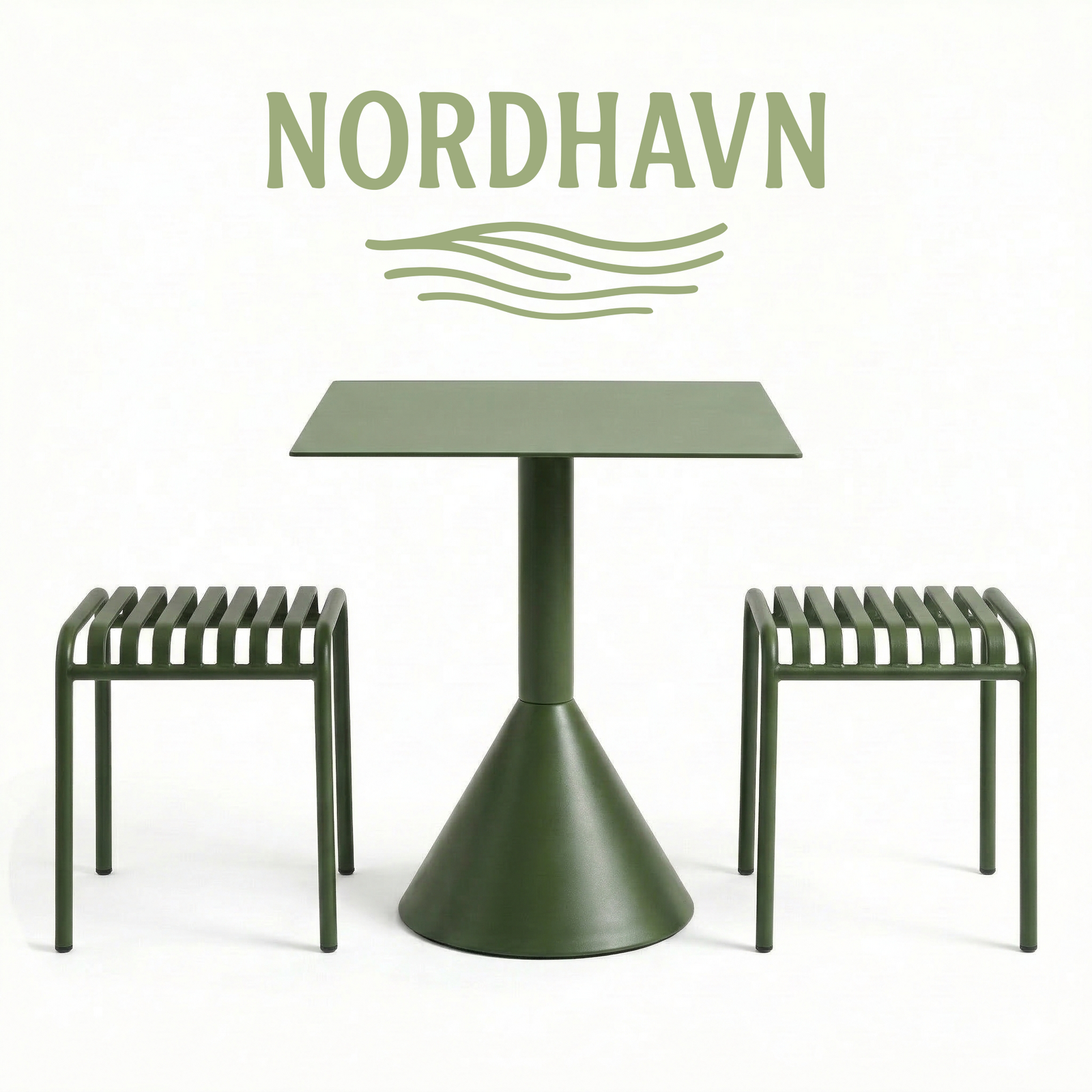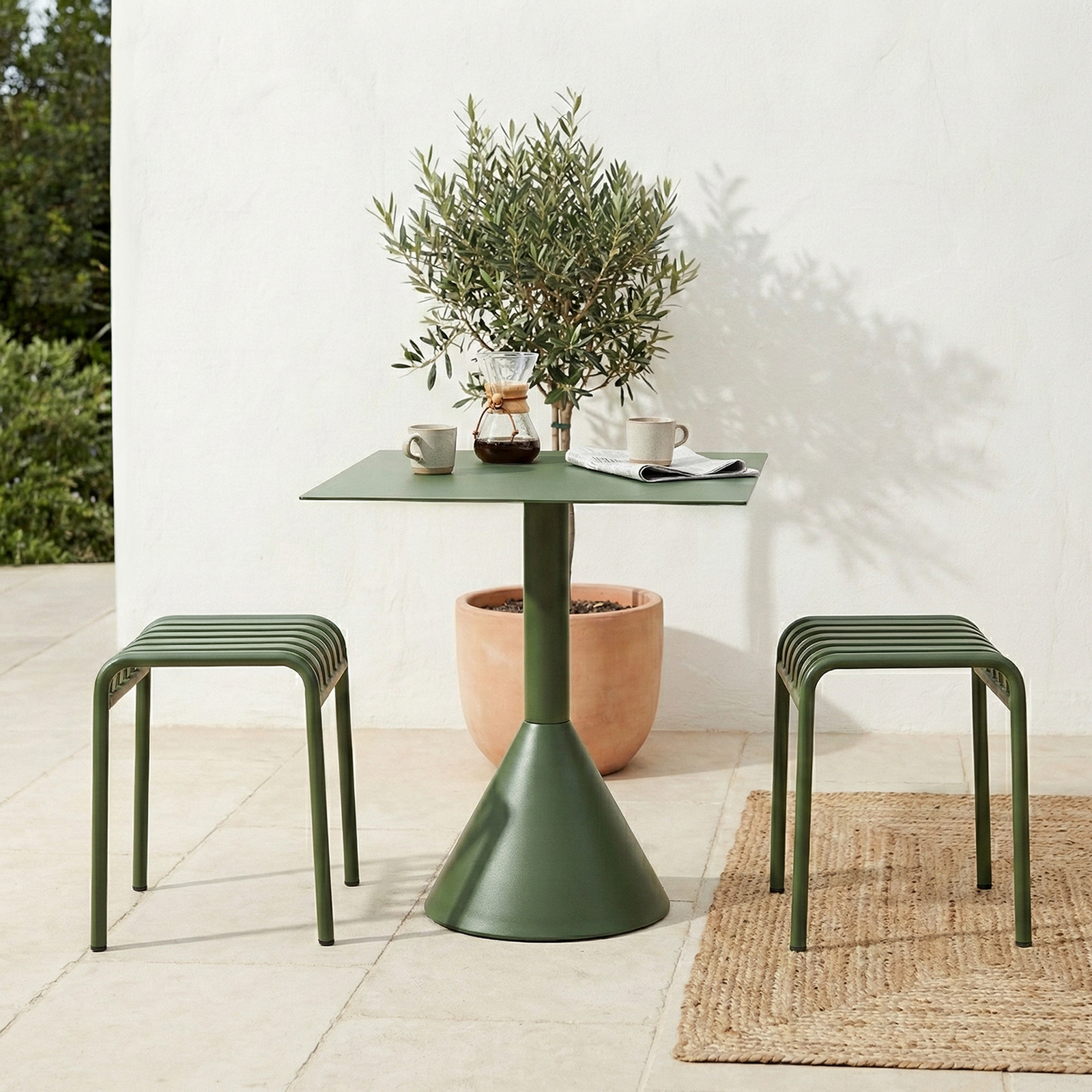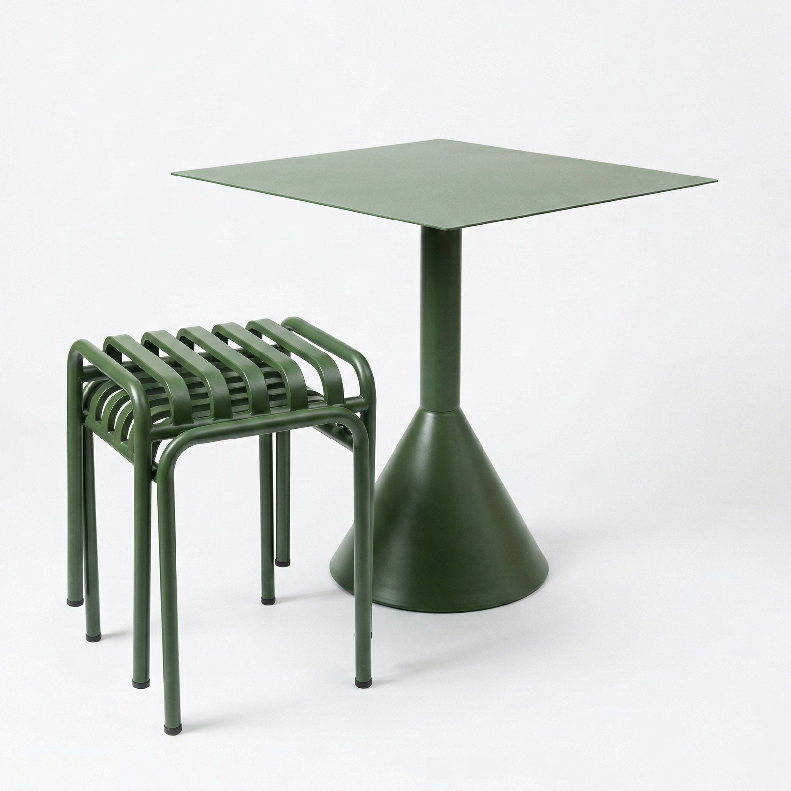Replica Hay Palissade Cone Table, Olive Green, Modern Metal Square with Sturdy Base for Balcony, Patio & Garden (Also Available as Set)