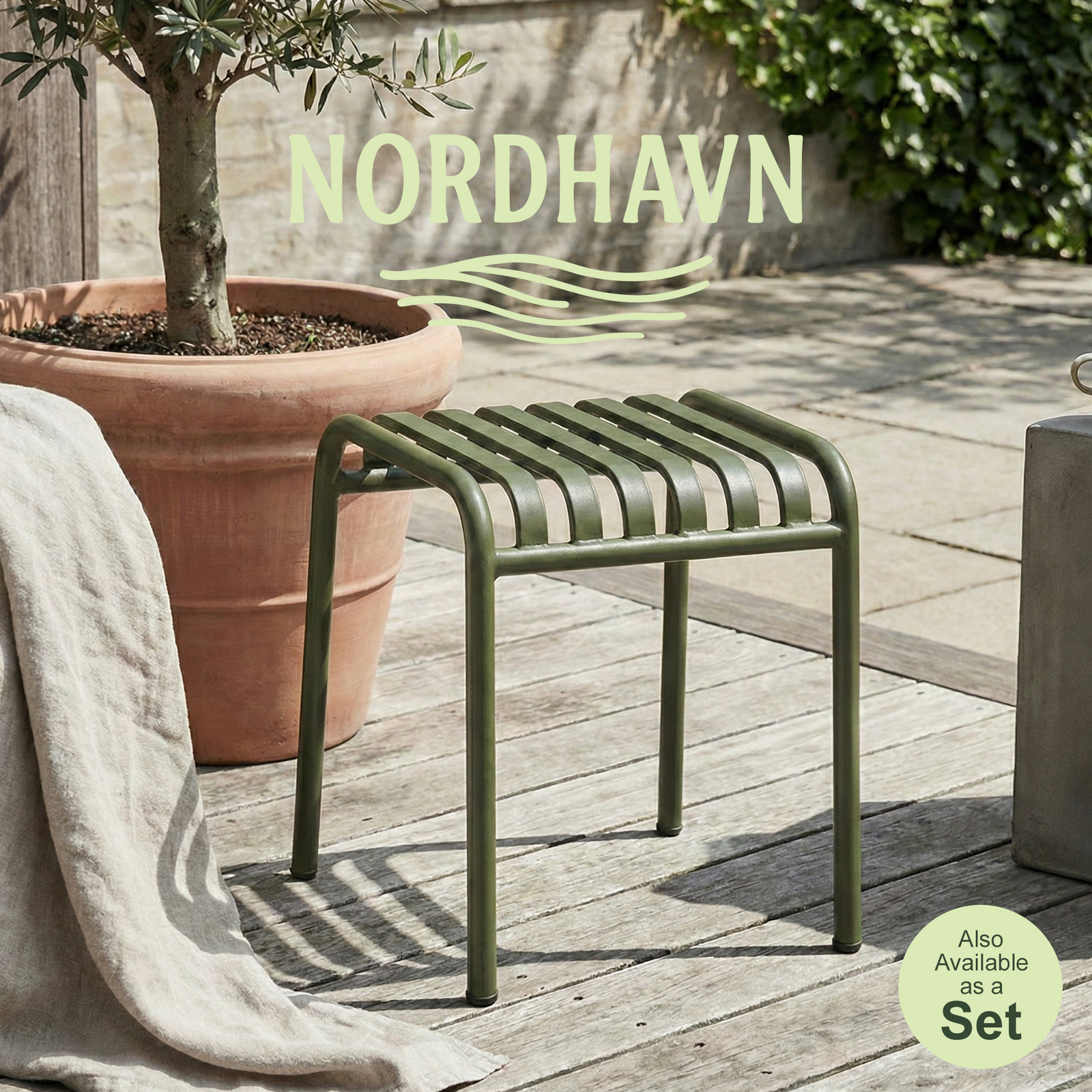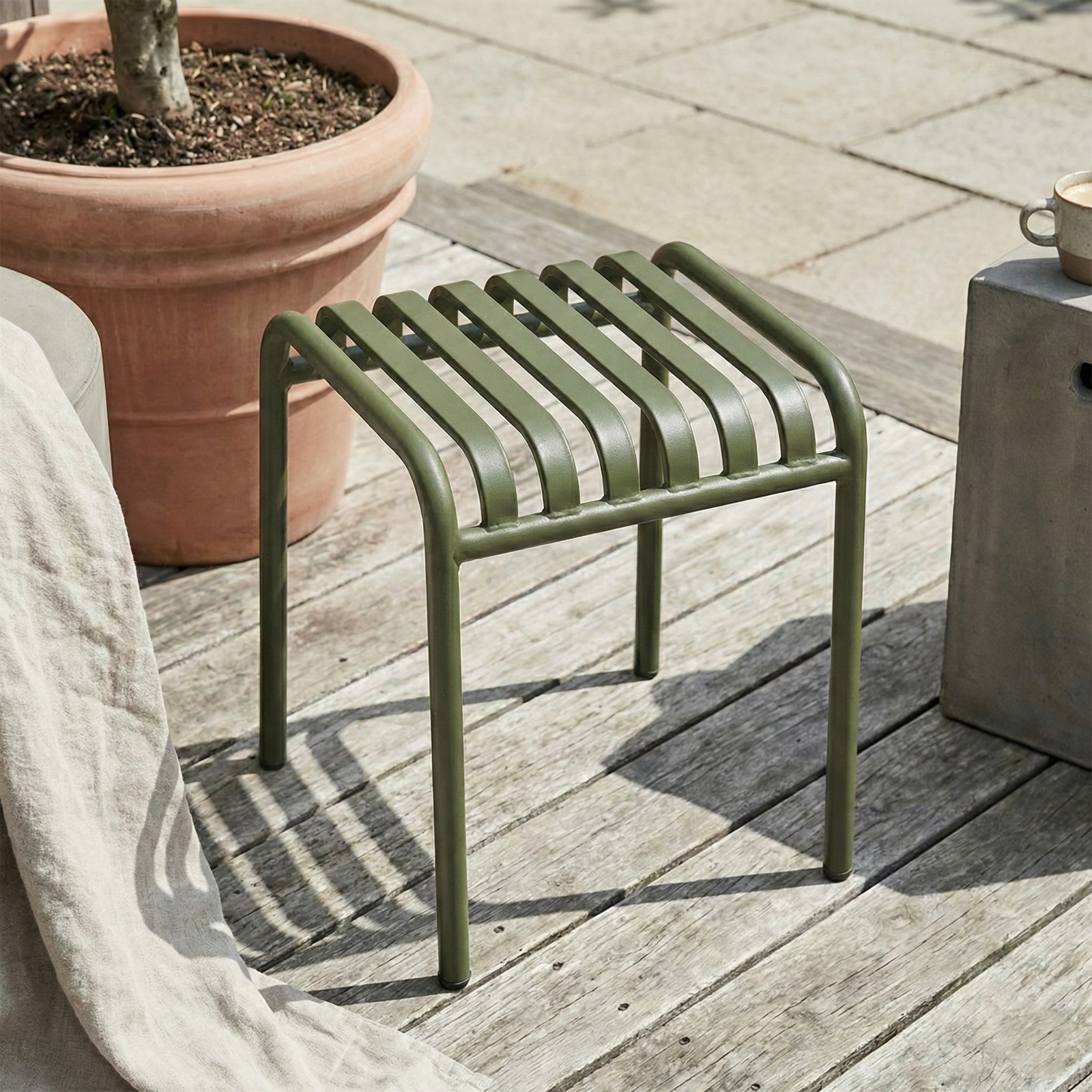 Add a modern touch to your space with this replica Hay Palissade Stool, inspired by the iconic design from the Palissade collection. Featuring a sleek slatted seat and durable metal construction, it offers a clean, graphic look that suits patios, balconies, gardens, entryways, or living spaces.