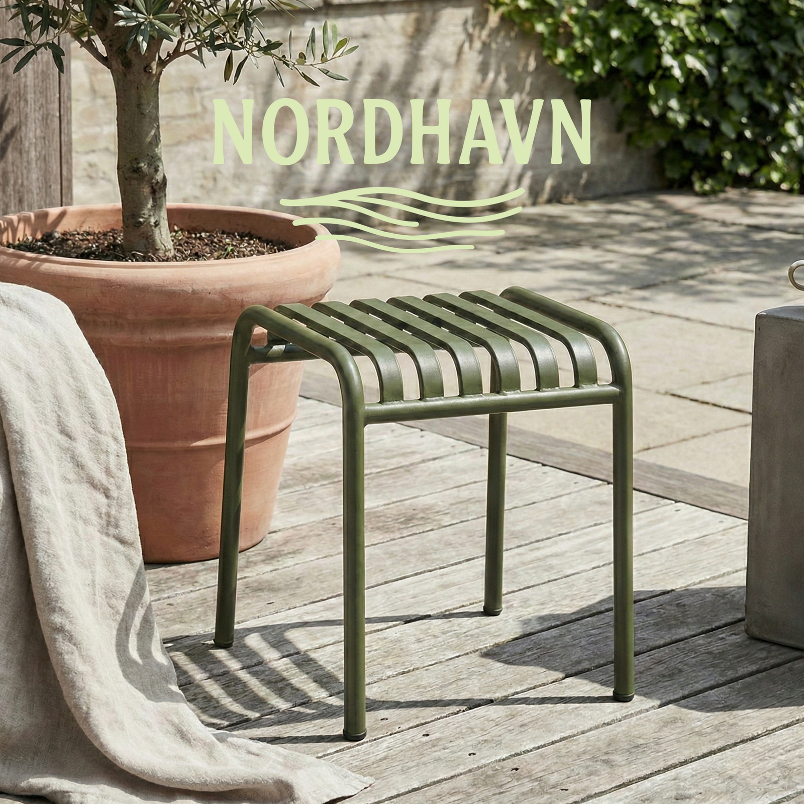 Nordhavn Replica Hay Palissade Low Stool, Olive Green Modern Metal Slatted Chair with Non-Slip Feet