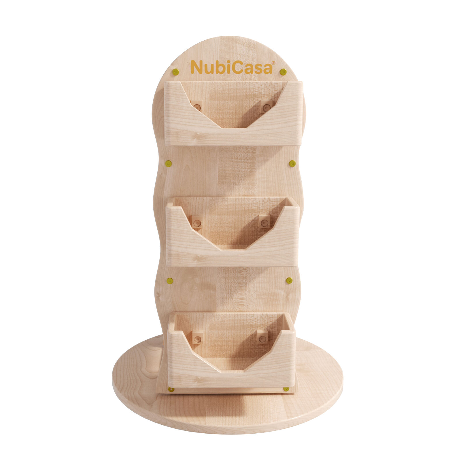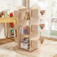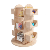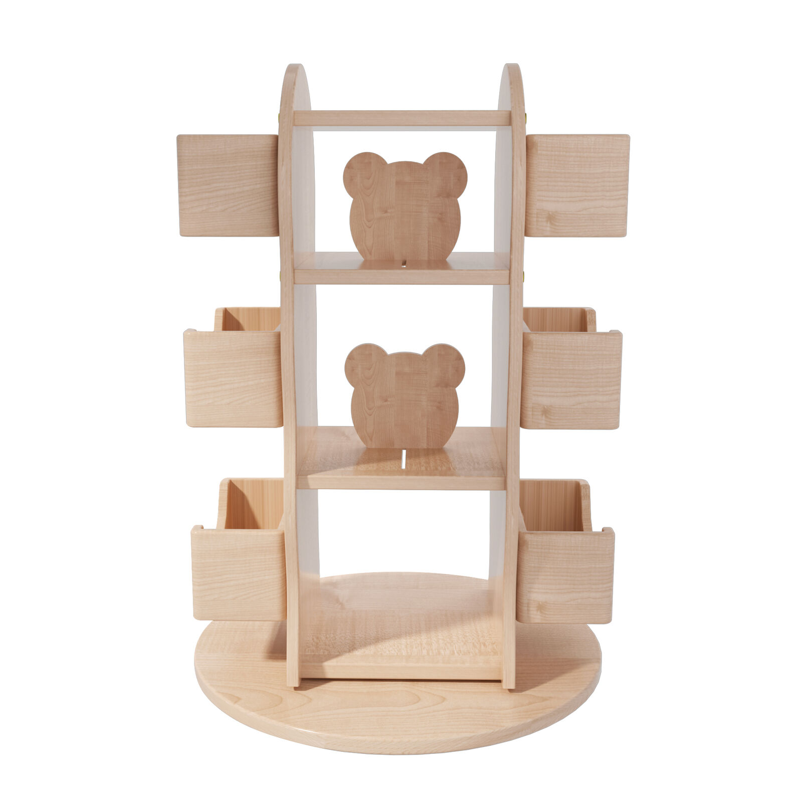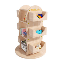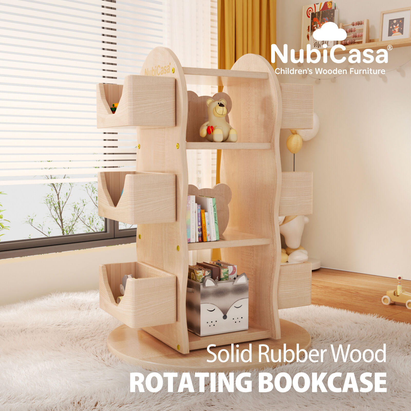 Nubicasa Rotating Solid Rubber Wood Bookshelf & Toy Organizer, Revolving 3 Tier Kids Bookcase w/ Ch