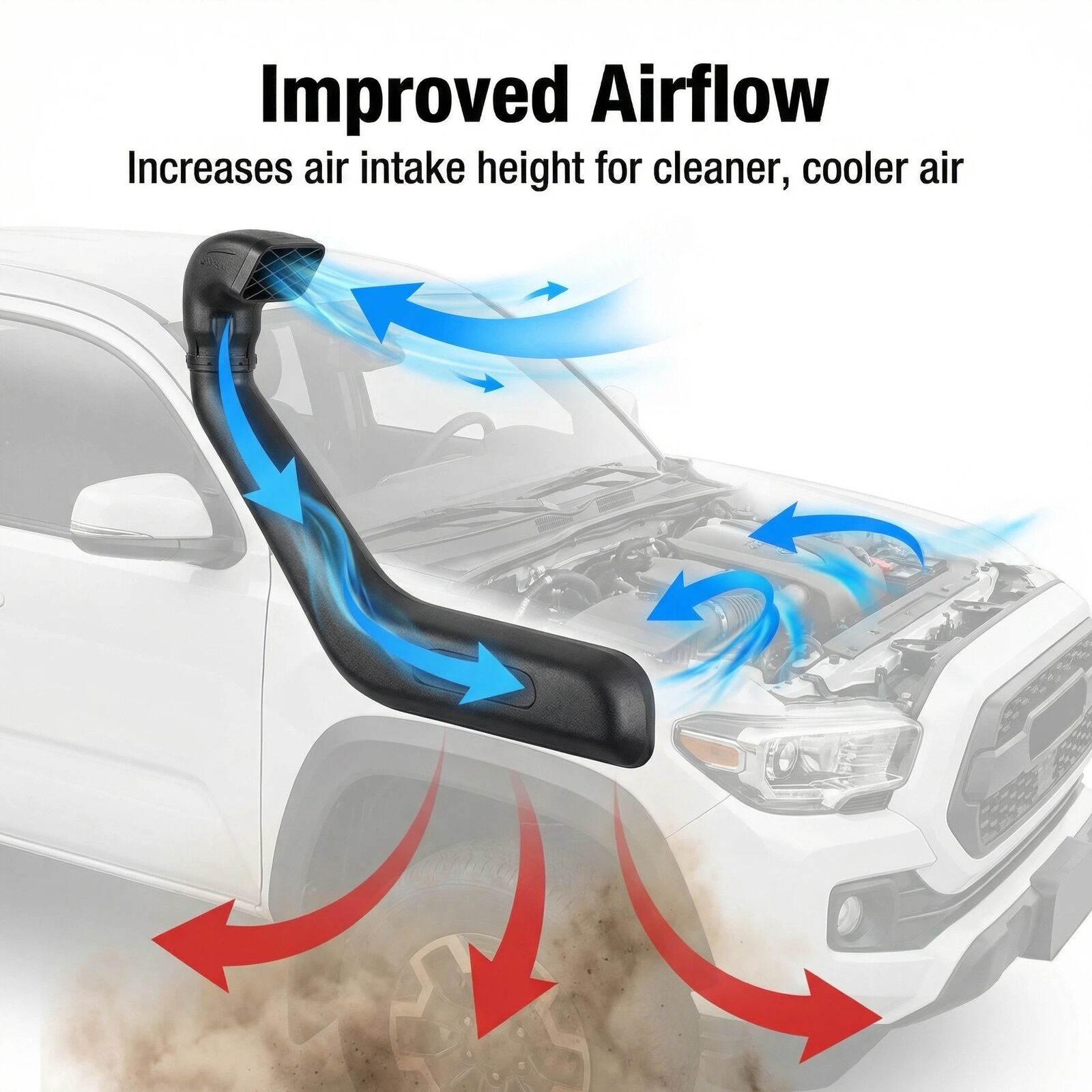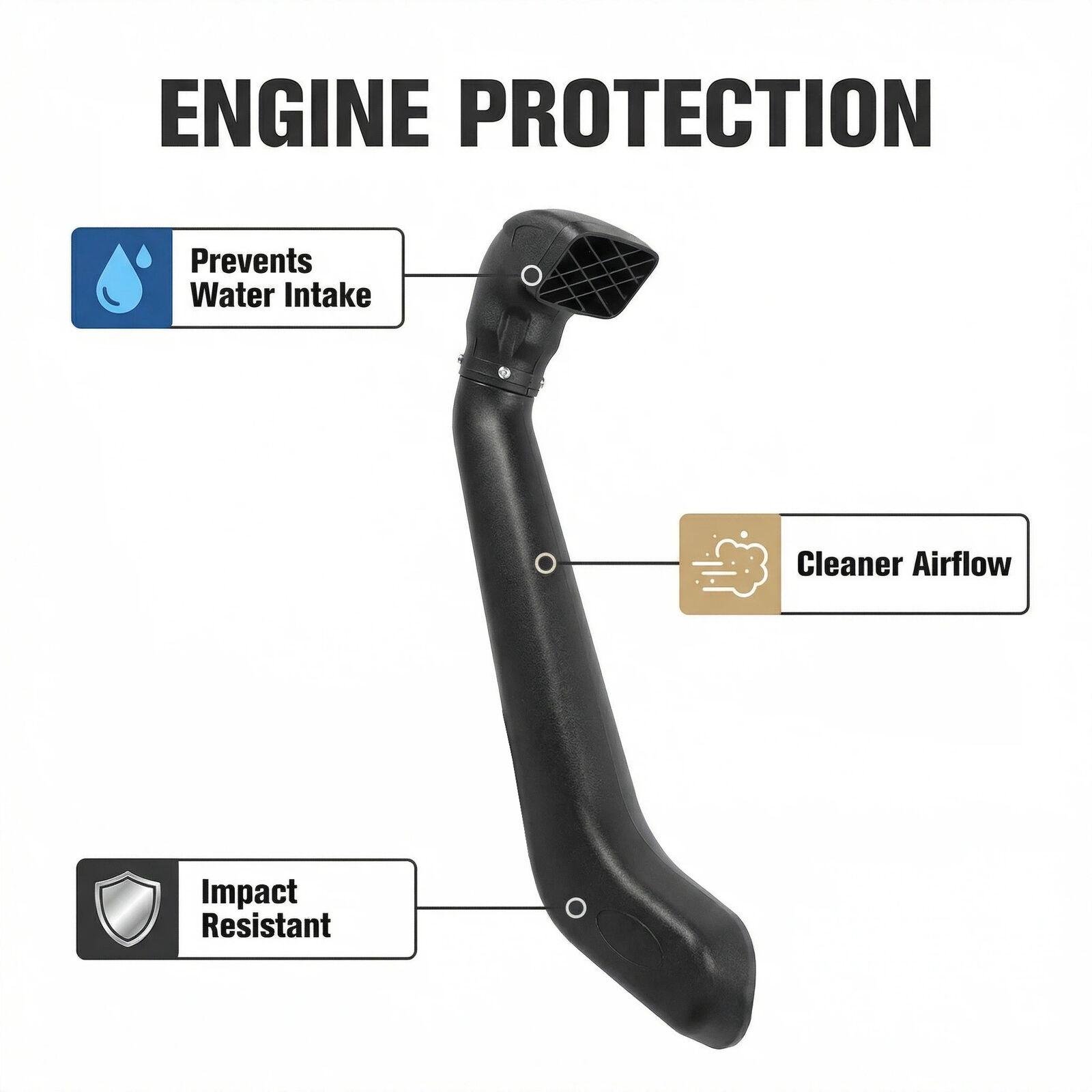 - SUPERIOR ENGINE PROTECTION: Significantly raises the air intake height to prevent water ingress during river crossings and reduces dust intake while driving in harsh, sandy Australian conditions.