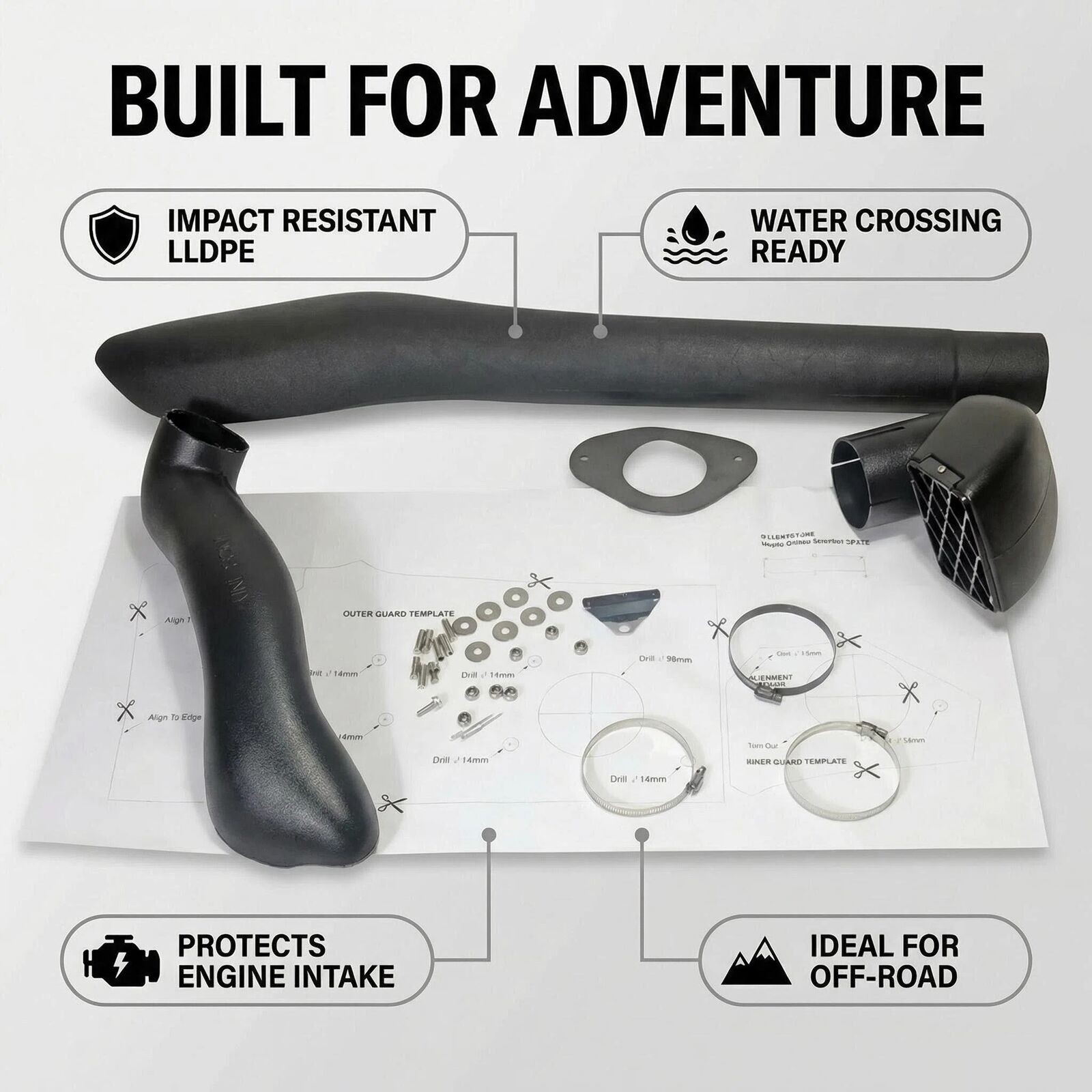 1. Water Crossing Ready: Prevents catastrophic engine "hydro-locking" by raising the intake above the water line.