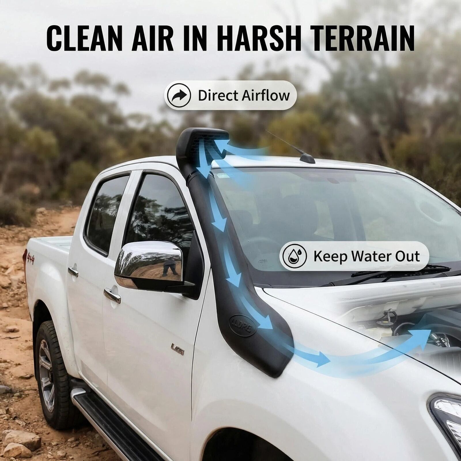 - Ultimate Engine Protection: By raising the air intake point, this snorkel delivers cleaner, cooler air to your engine. It is essential for protecting your intake from water ingestion during deep crossings and reducing dust buildup in harsh, dry Australian terrains.