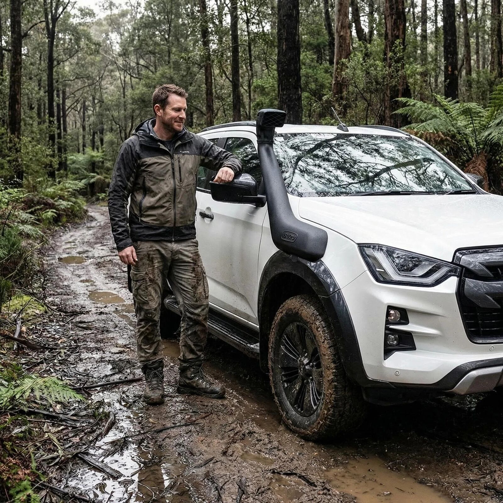 Take your 3rd Gen Isuzu D-Max to the next level with our premium snorkel kit. Designed for the modern adventurer, this kit allows you to push through deep water, mud, and dust without compromising your engine's safety. By moving the air intake from the vulnerable wheel arch to the roofline, you ensure your vehicle is "Water Crossing Ready" for every Australian track.